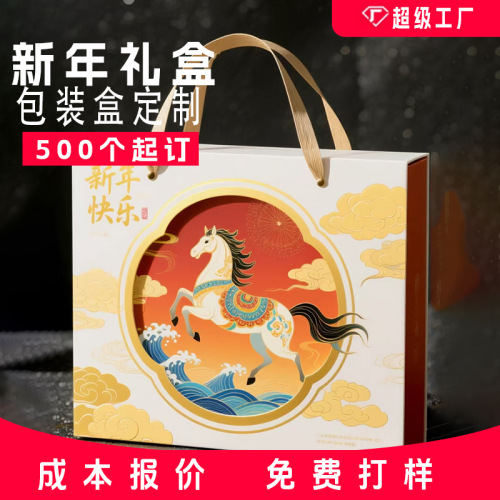 new year red portable gift box custom spring festival horse year nut snack gift bag new year goods specialty gift packaging 中文版