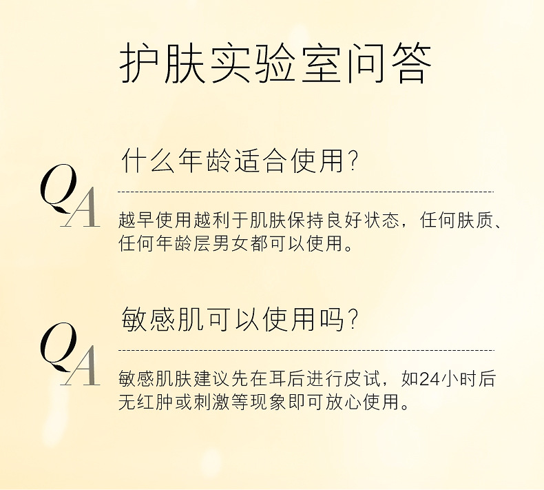 Suitable for skin types: dehydrated and stress-prone skin. Retail price: 286 yuan Product Efficacy: Relaxing and repairing skin, providing the necessary nutrients and moisture to the skin. Main ingredients: Extract of silver ear fruiting body, β-glucan, betaine, etc. "Tremella mushroom extract": Known as plant hyaluronic acid, it maintains moisture and creates a natural, transparent and luminous skin. β-Glucan: A substance found in the yeast cell wall that has an anti-aging effect. 1. Enhances the skin's own immunity, removes free radicals, and assists in the accelerated recovery of damaged tissue by producing cytokines, exhibiting unique biological activity in the treatment of sensitive skin. 2. Targeting aging skin and wrinkles, increasing the expression of epidermal growth factor (EGF) promotes the increase of collagen and elastin, achieving the effect of anti-aging and wrinkle removal. 3. Enhances the regenerative capacity of damaged cells, accelerates the rate of keratinocyte regeneration, and promotes wound healing and repair. 4. Betaine It is a naturally occurring edible amino acid extracted from sugar beets, a natural moisturizer. It does not leave a sticky feeling when used, and after use, it makes the skin smoother. It penetrates through the skin's stratum corneum to maintain the balance of cells and increase the moisture content of the surface skin, reducing the irritating effect of surface active agents on the skin.