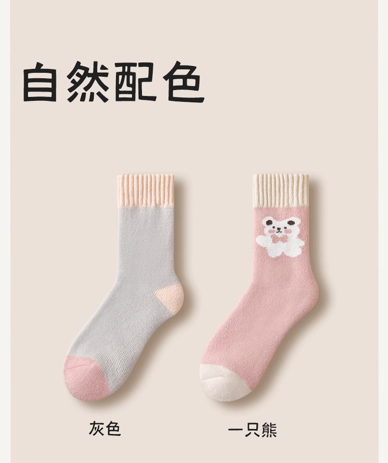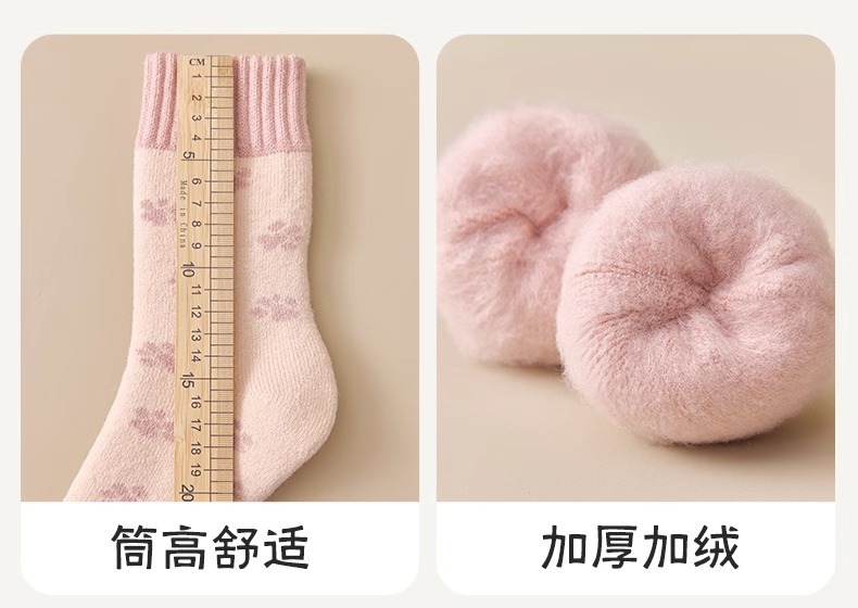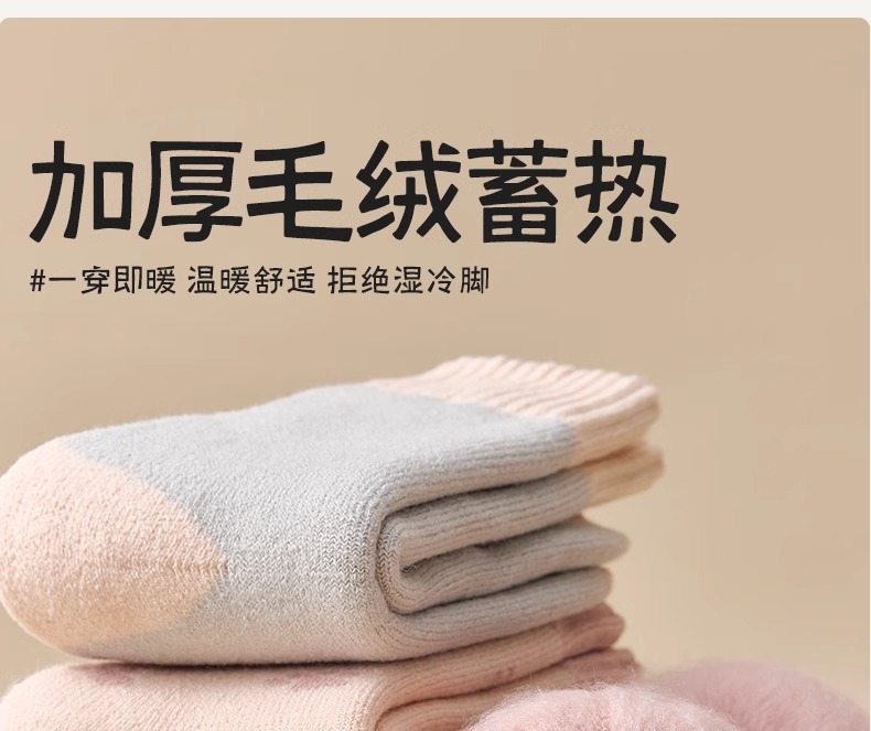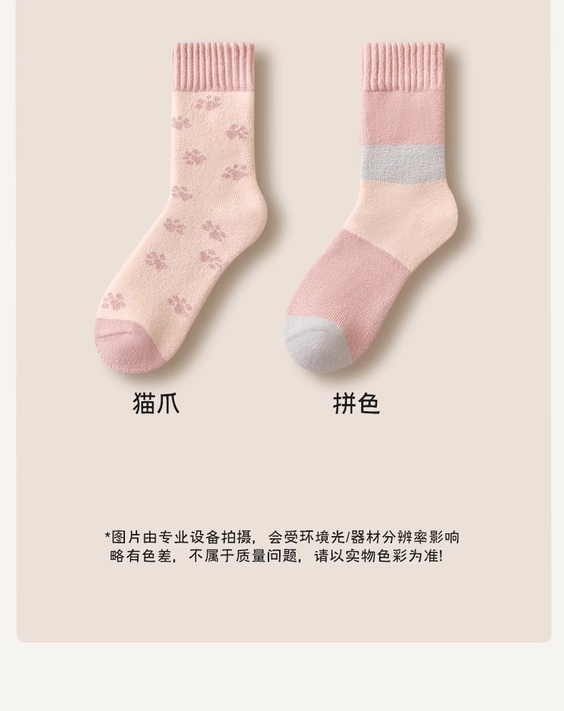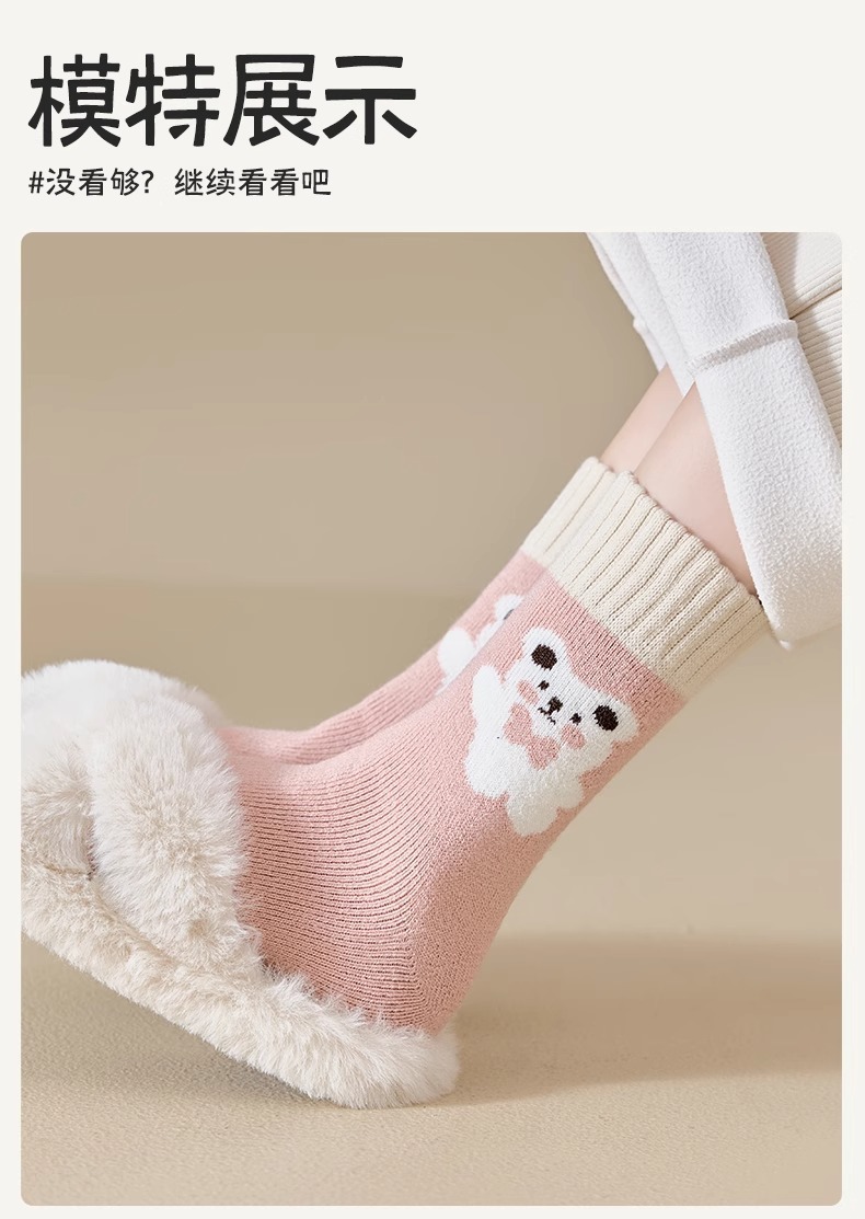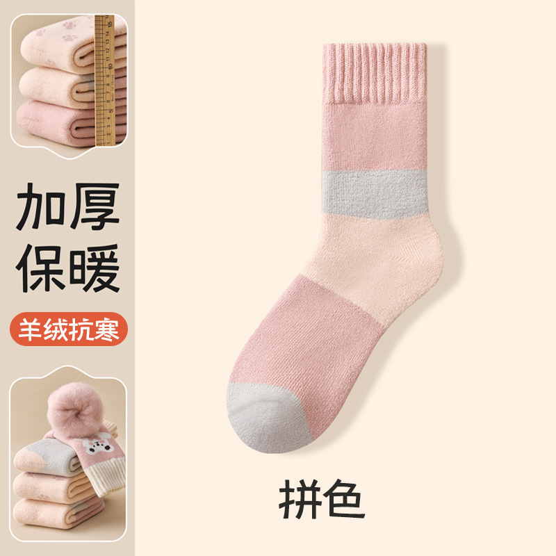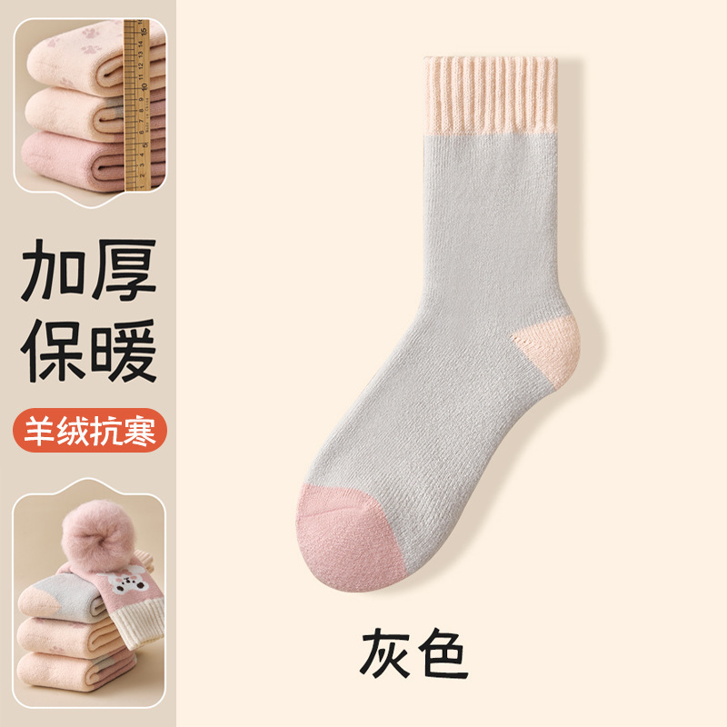 women's autumn and winter mid-calf wool fleece lined thickened sleep floor socks terry warm confinement color matching cashmere socks 中文版