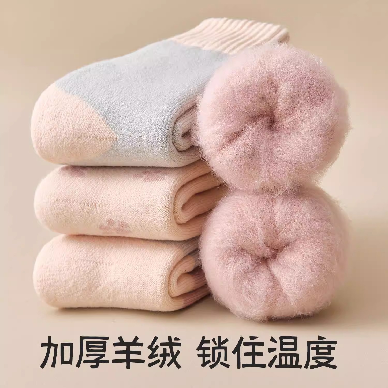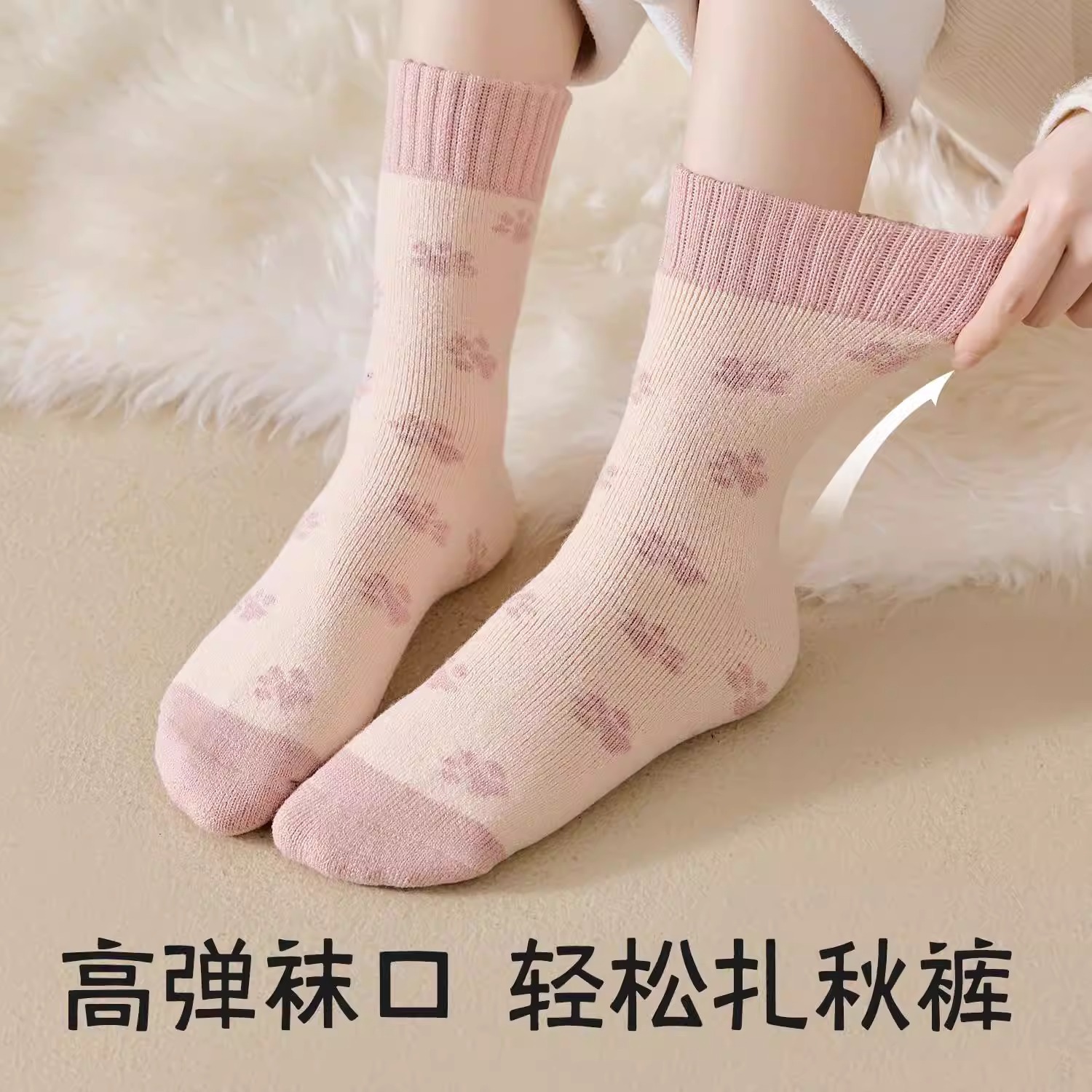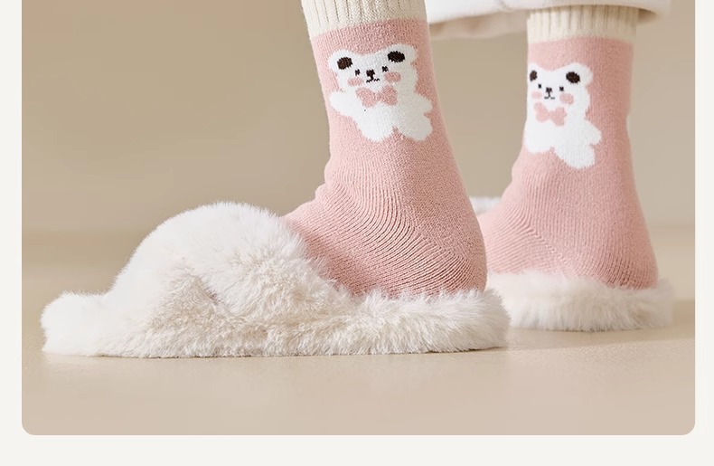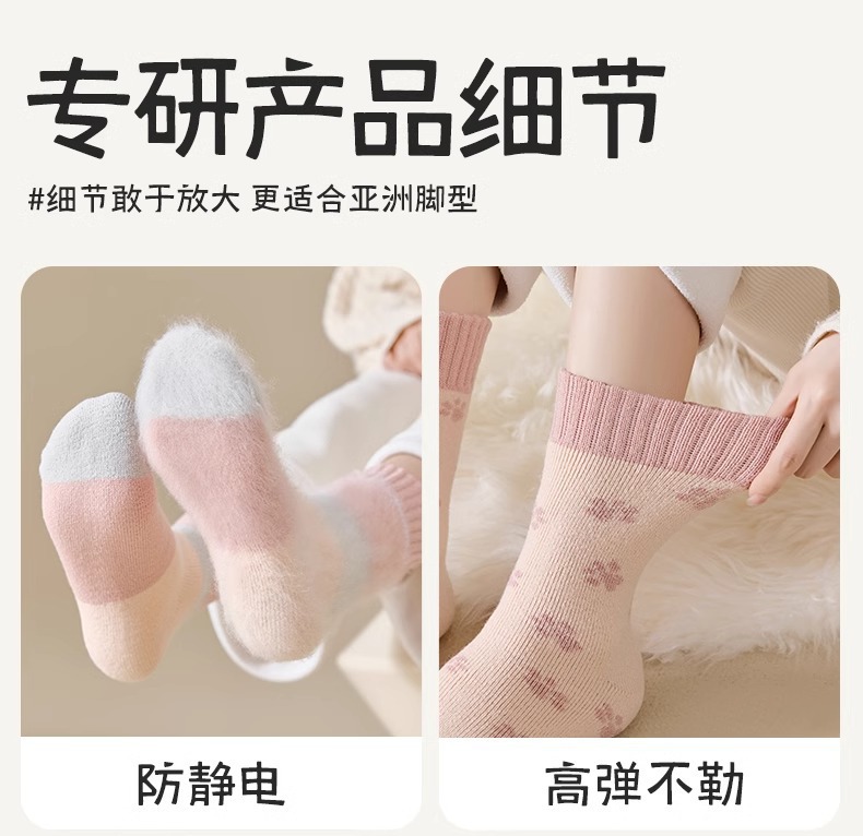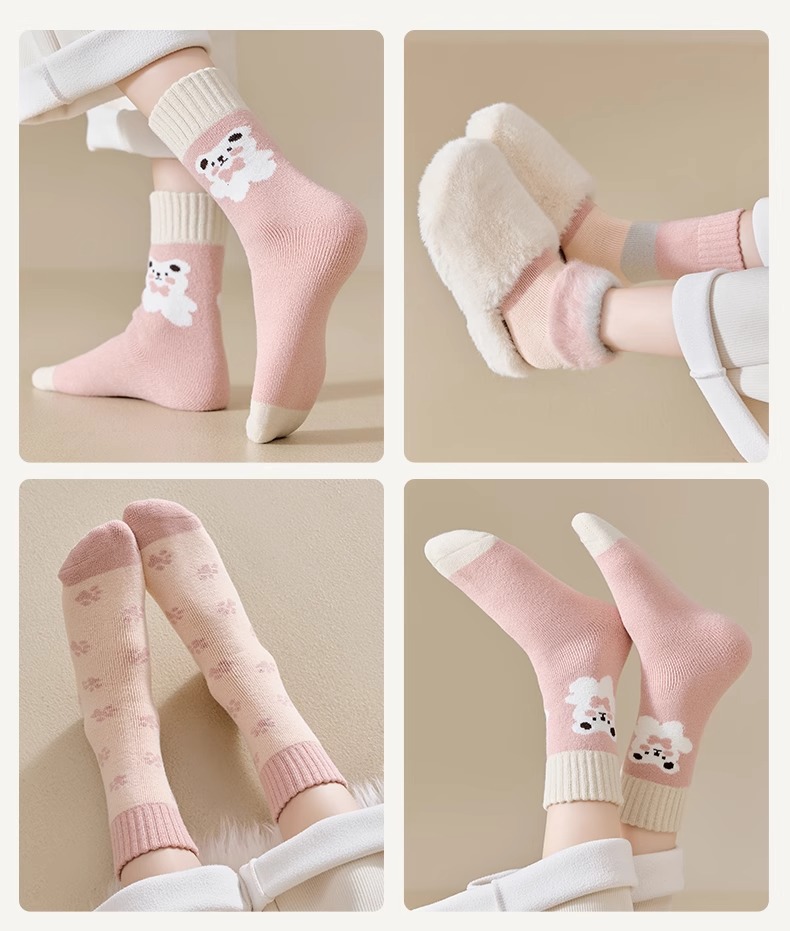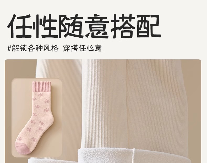 women's autumn and winter mid-calf wool fleece lined thickened sleep floor socks terry warm confinement color matching cashmere socks 中文版