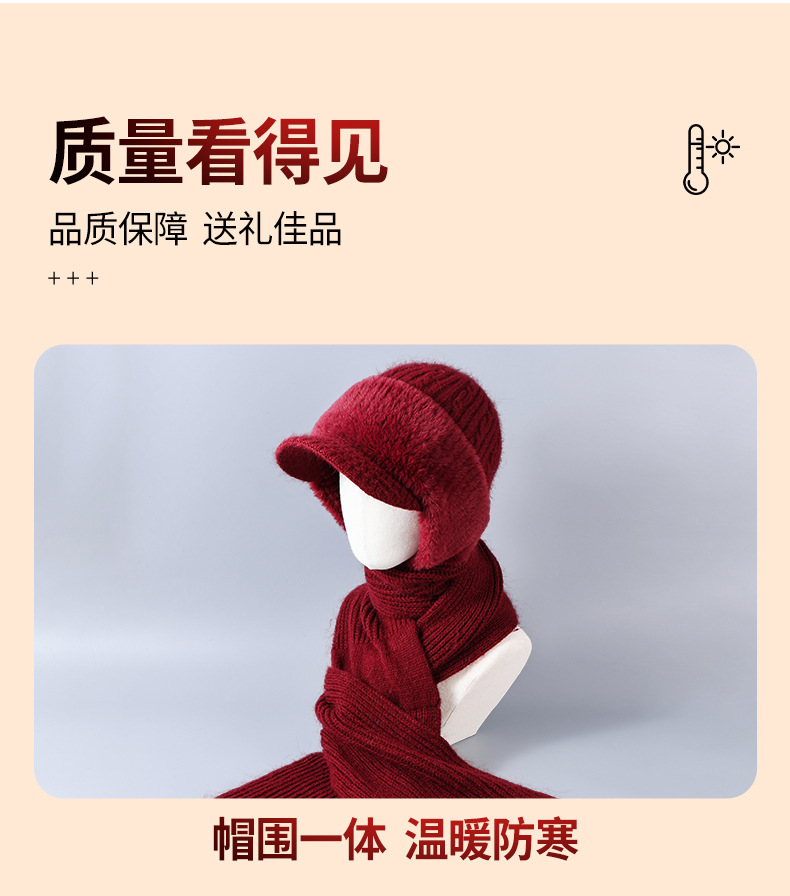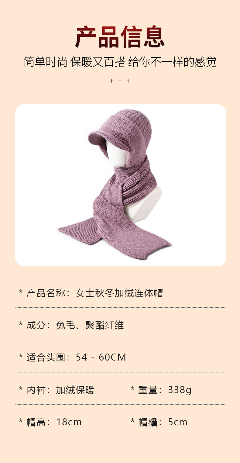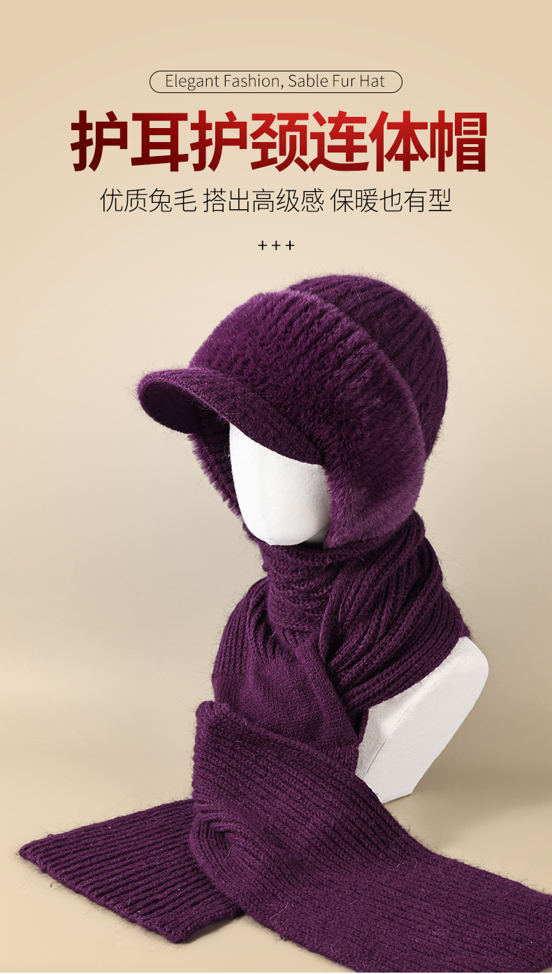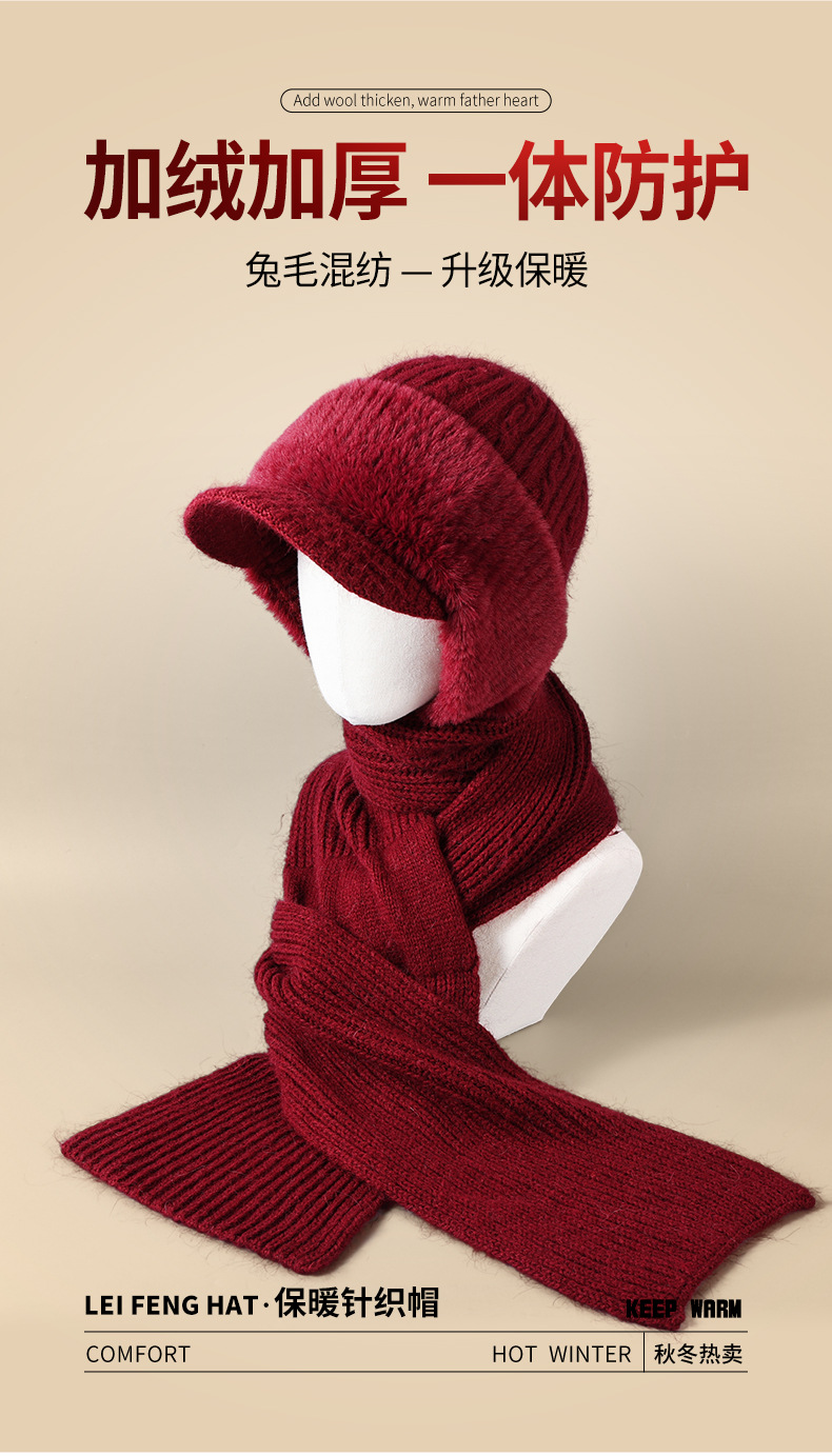winter woolen hat all-matching knitted hat female middle-aged and elderly warm fashion sleeve cap neckerchief cover windproof neck protection 中文版