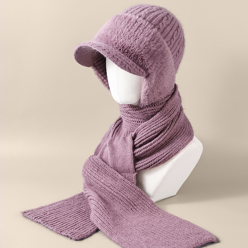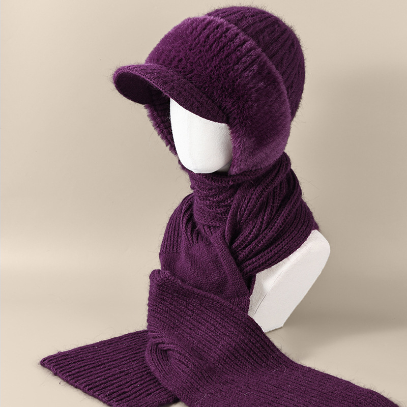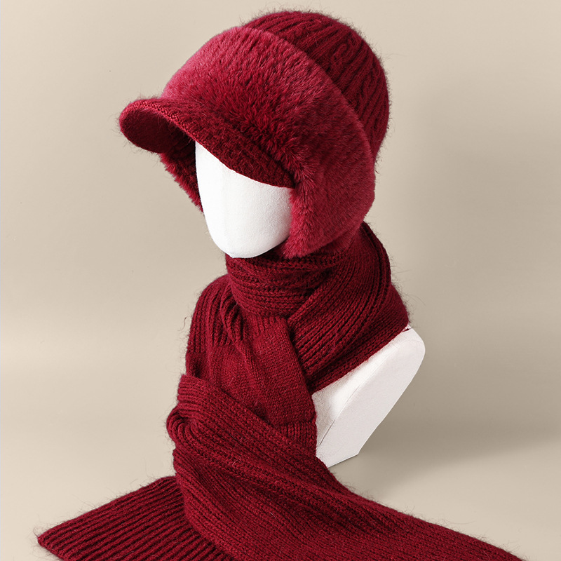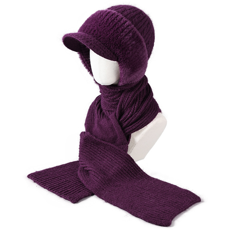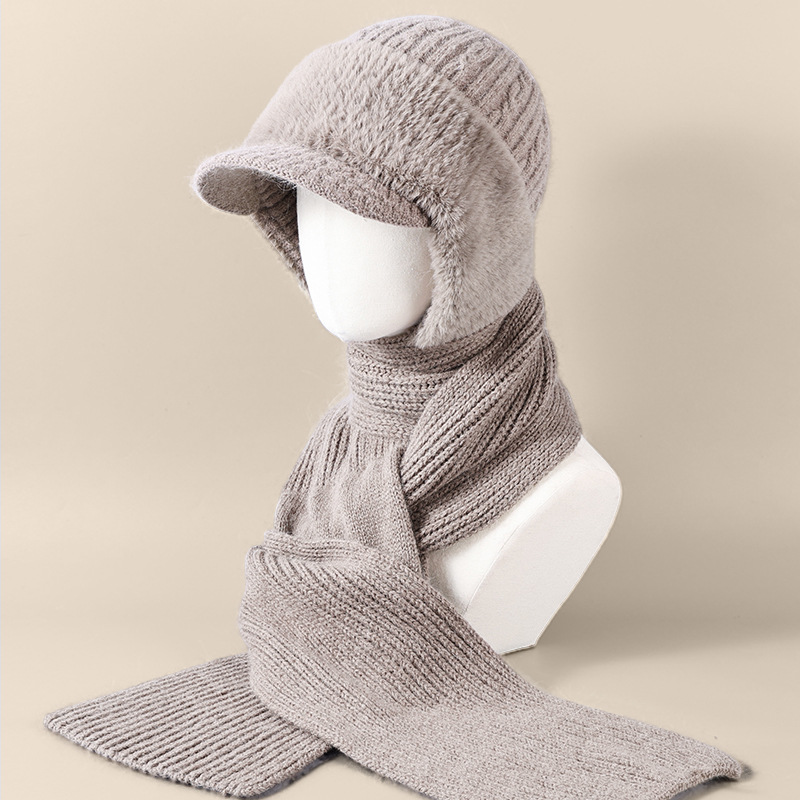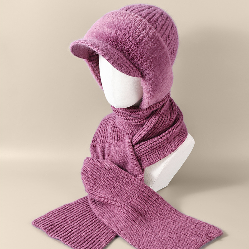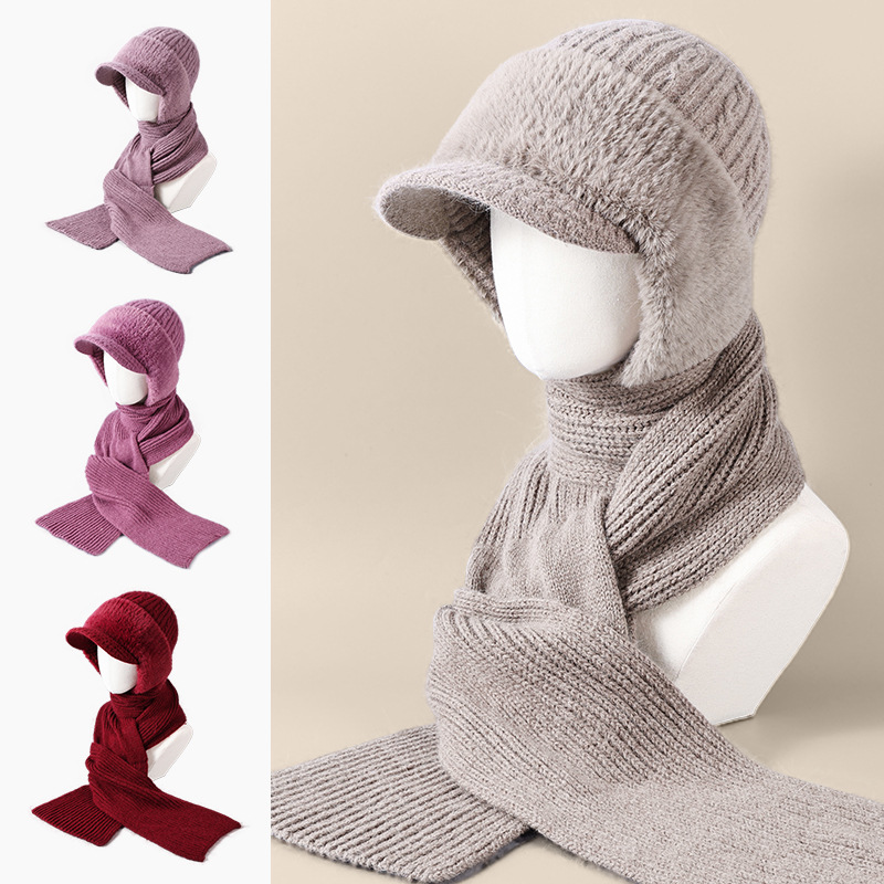winter woolen hat all-matching knitted hat female middle-aged and elderly warm fashion sleeve cap neckerchief cover windproof neck protection 中文版