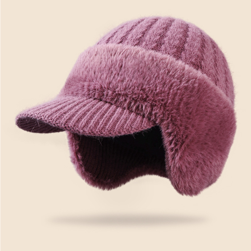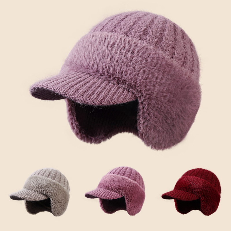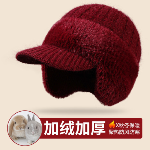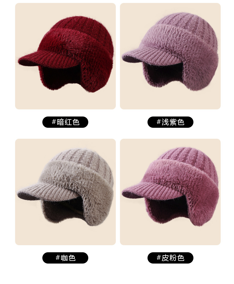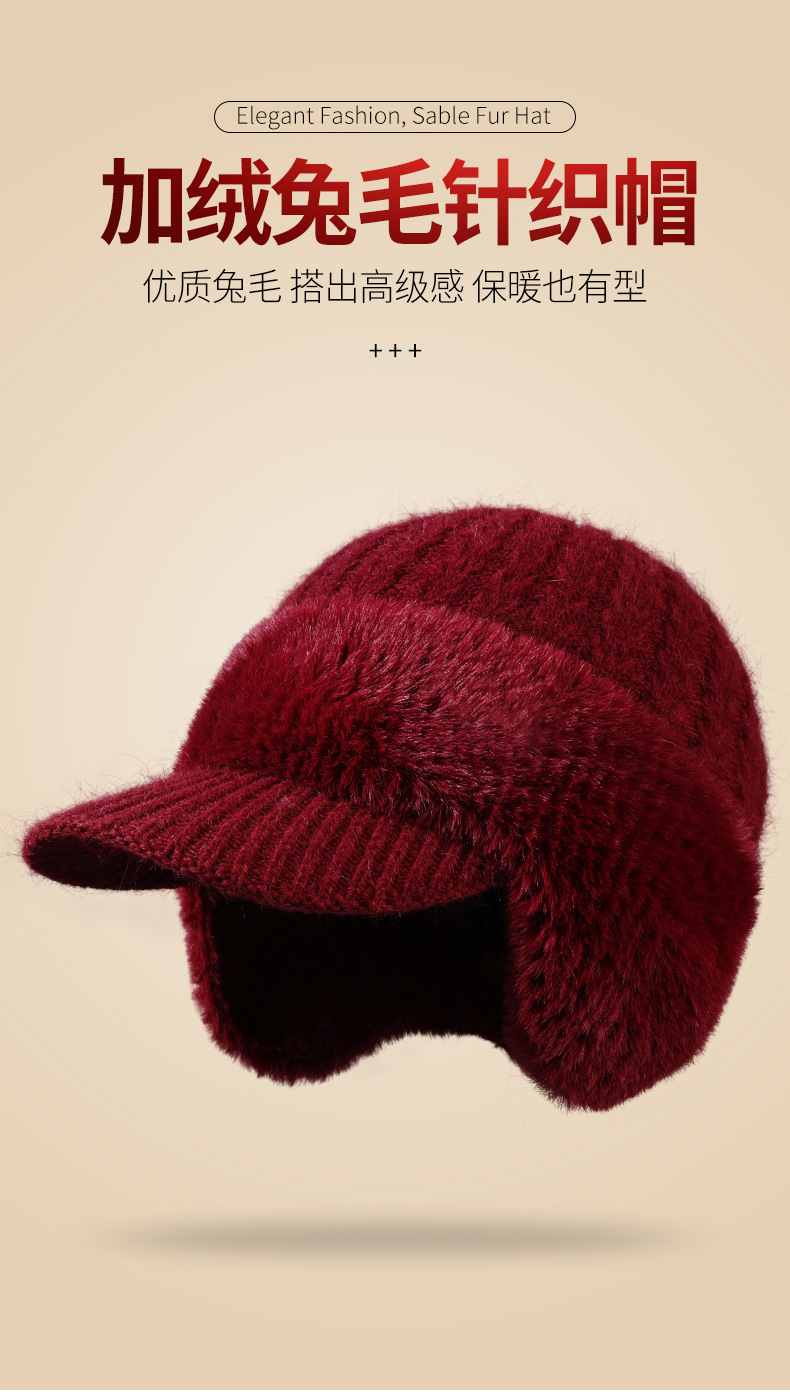 winter new female earmuffs hat woolen cap outdoor riding warm with velvet windproof earflaps knitted hat rabbit fur hat 中文版