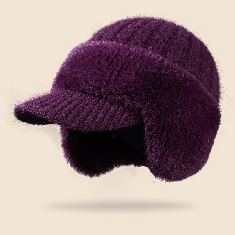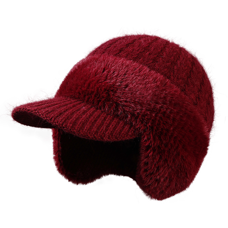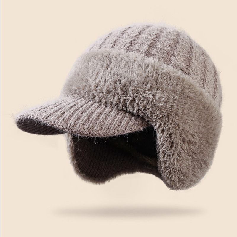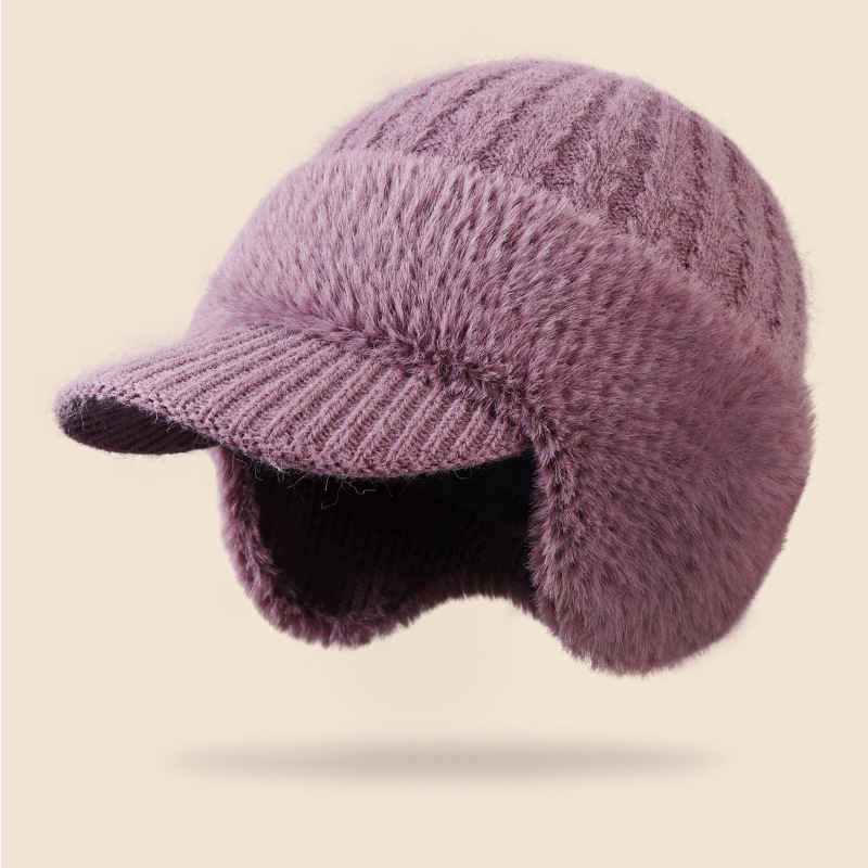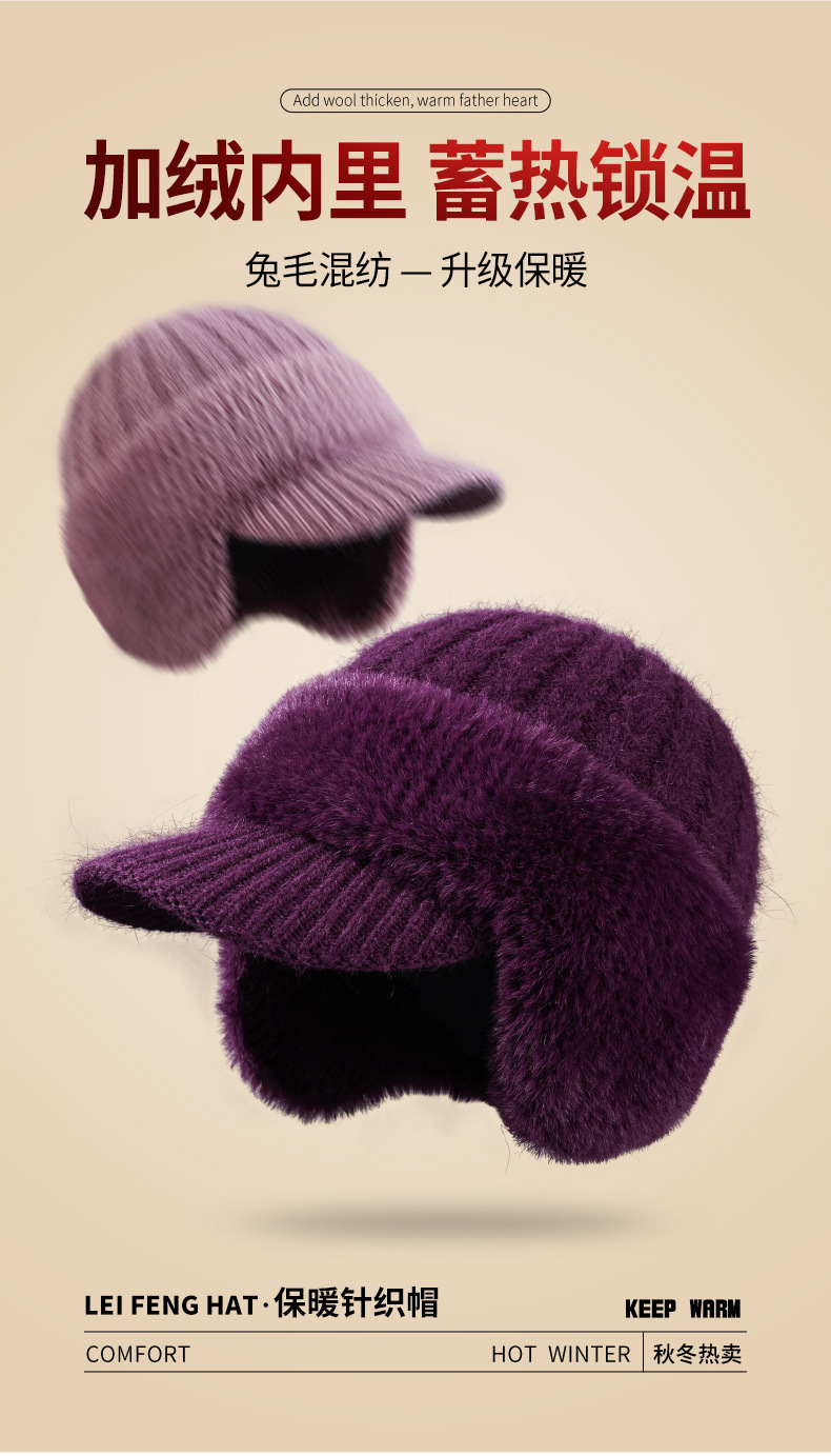winter new female earmuffs hat woolen cap outdoor riding warm with velvet windproof earflaps knitted hat rabbit fur hat 中文版