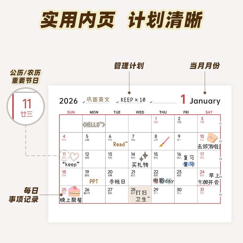 white-including calendar stand [month of 25-end of 26]]