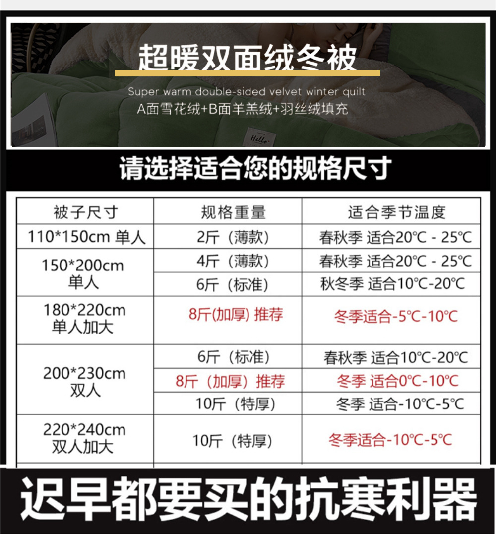 | 180 x220cm 4.00kg [super warm milk fiber + lambswool winter quilt]] | ¥80.28 | 814 piece available |
