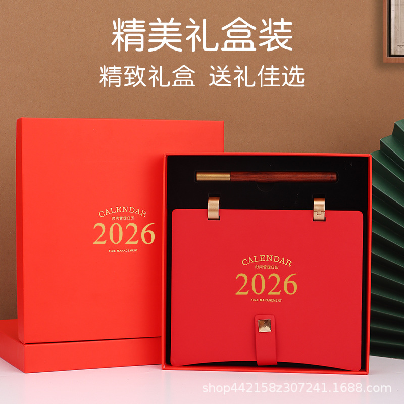 innovative metal buckle 2025 desk calendar set-red