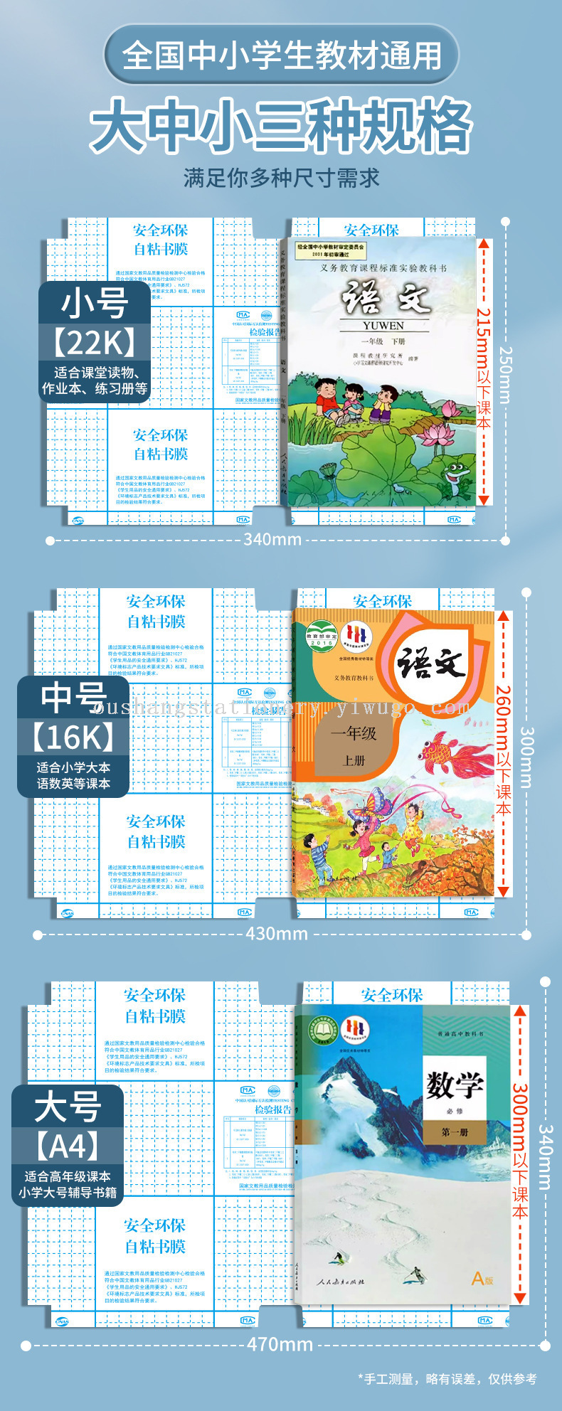Large A4 is suitable for high school textbooks and large-sized primary school study books.