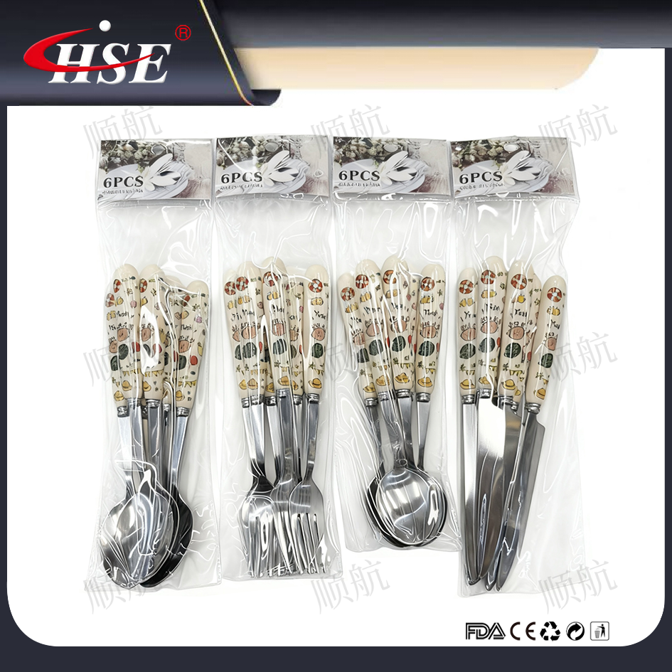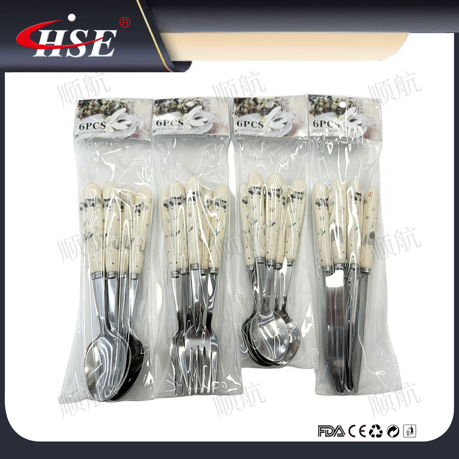 porcelain handle stainless steel tableware spoon fork dessert spoon dinner knife steak knife natural color supermarket foreign trade wholesale 中文版