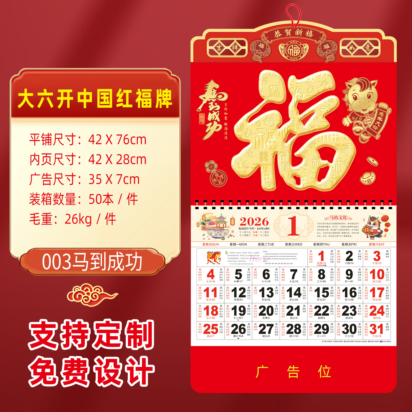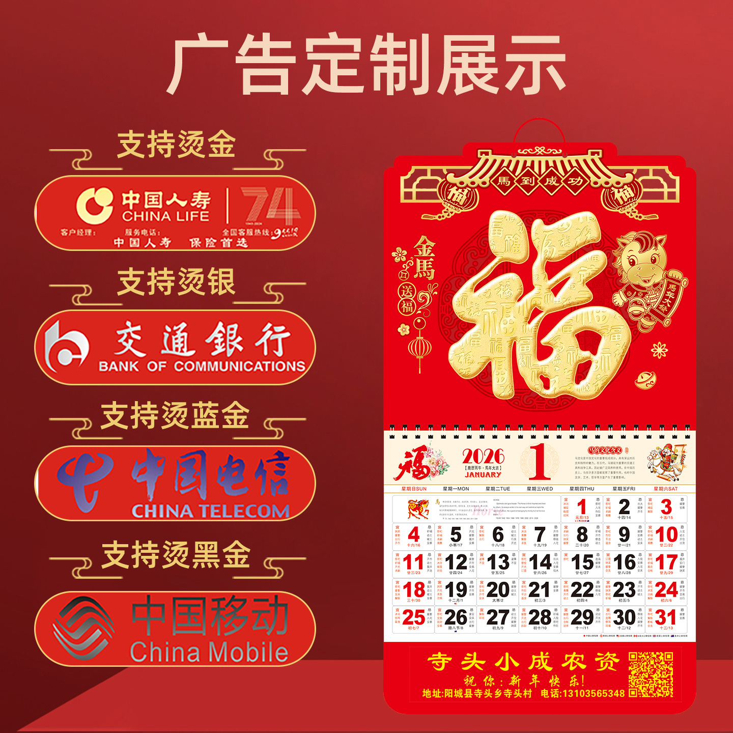 zhengliukai chinese red-015 golden horse sending blessing