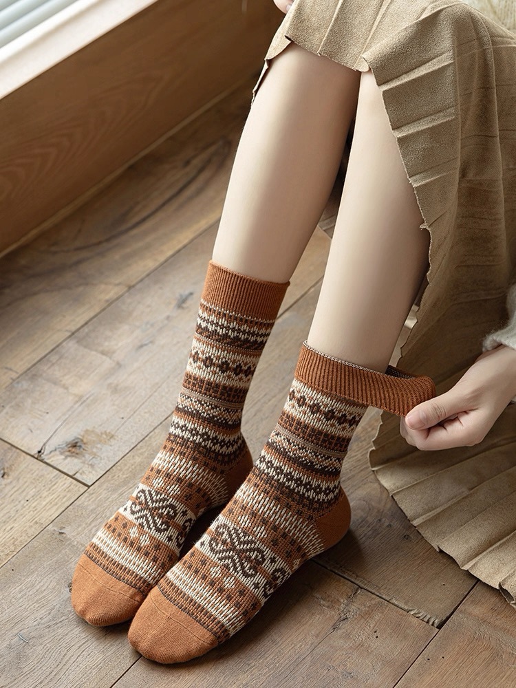 3-74 -- retro ethnic style women's mid-calf -- coffee