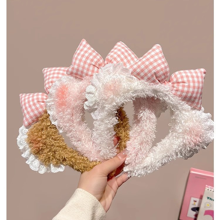 curly rabbit ears-pink lace bow