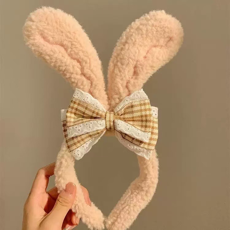 lace bow rabbit ears-pink