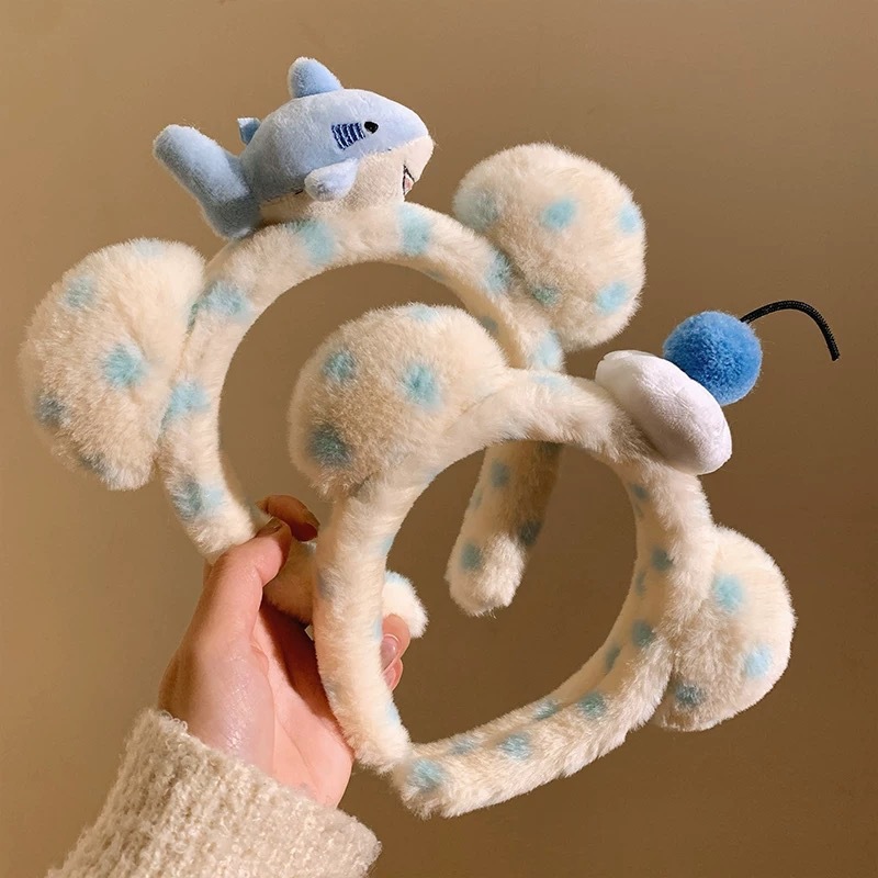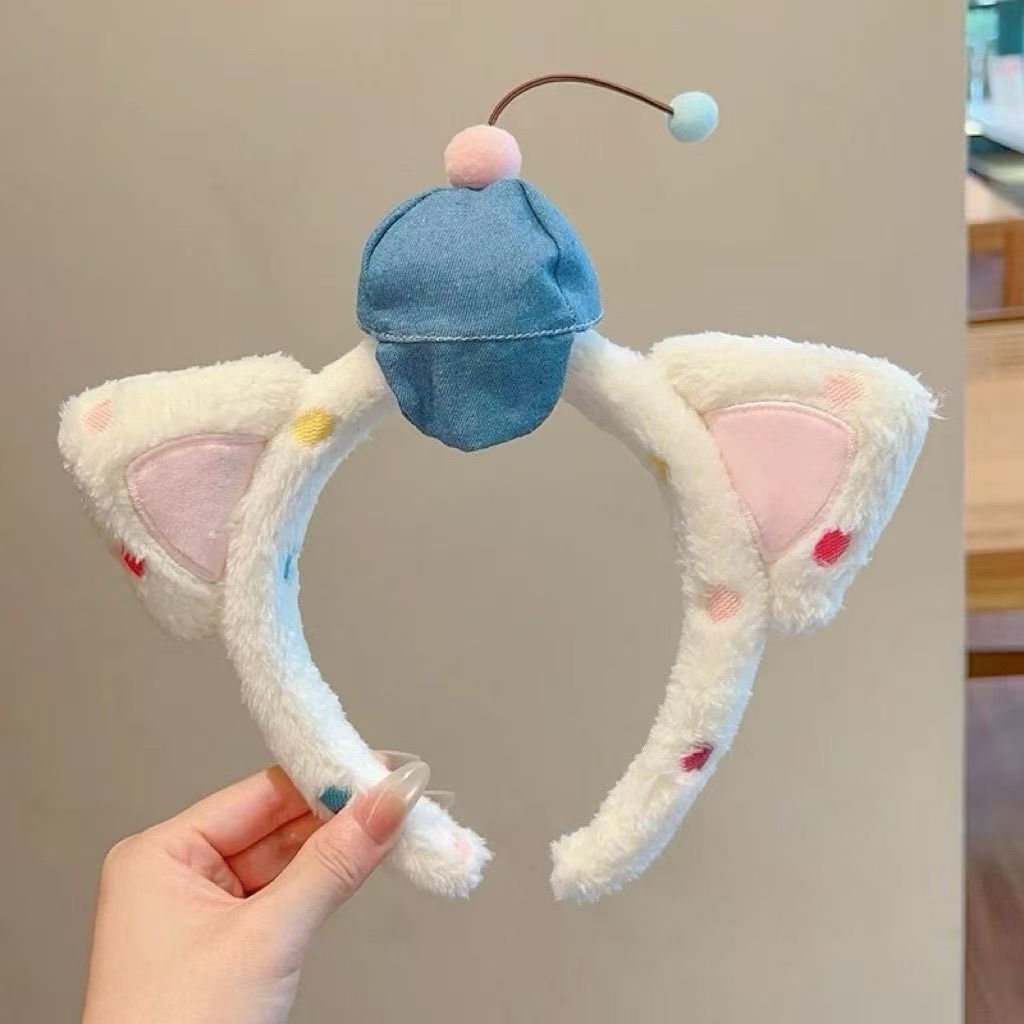curly rabbit ears-blue bow-knot