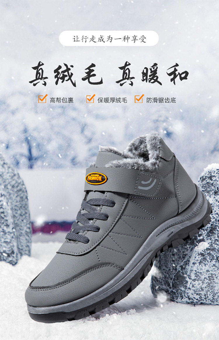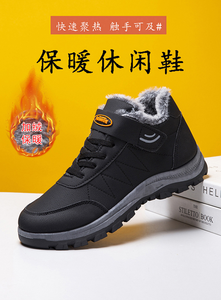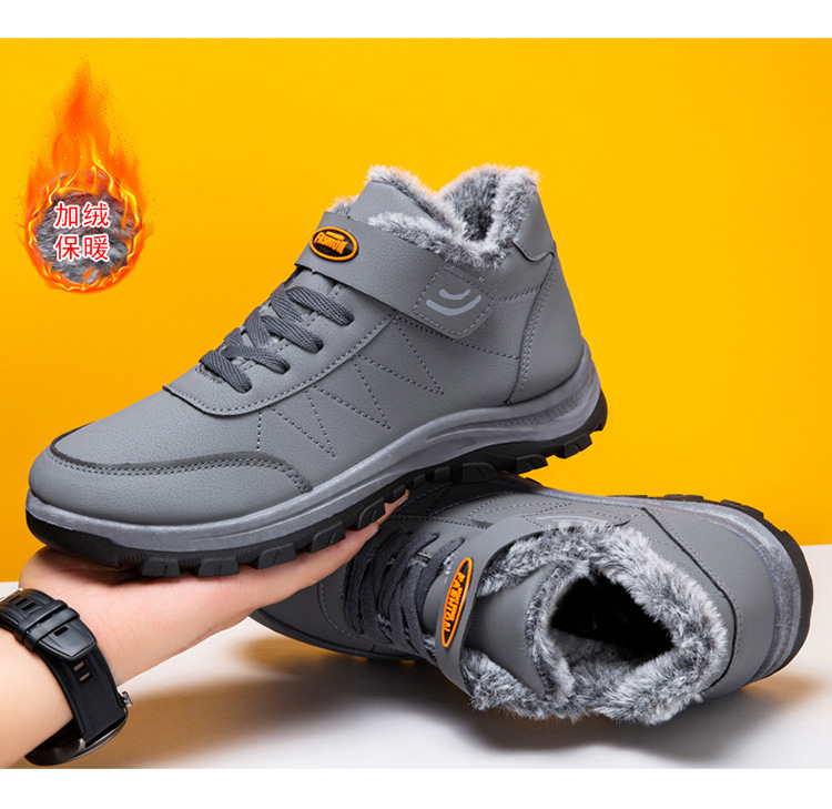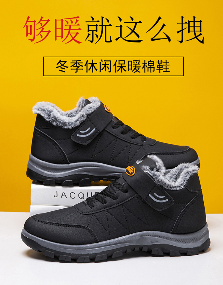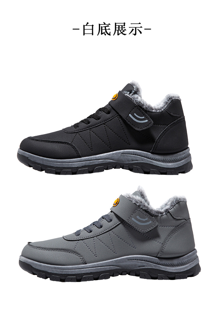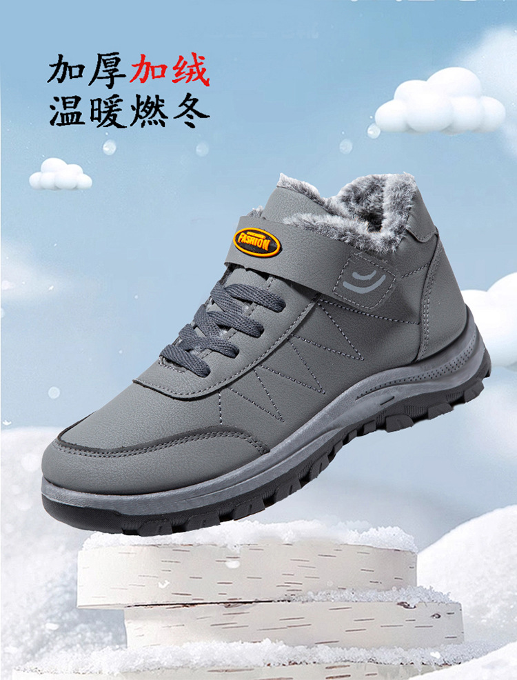 2025 cross-border new arrival cotton shoes outdoor men's thick leather shoes men's winter high-top sneakers walking shoes for the elderly 中文版