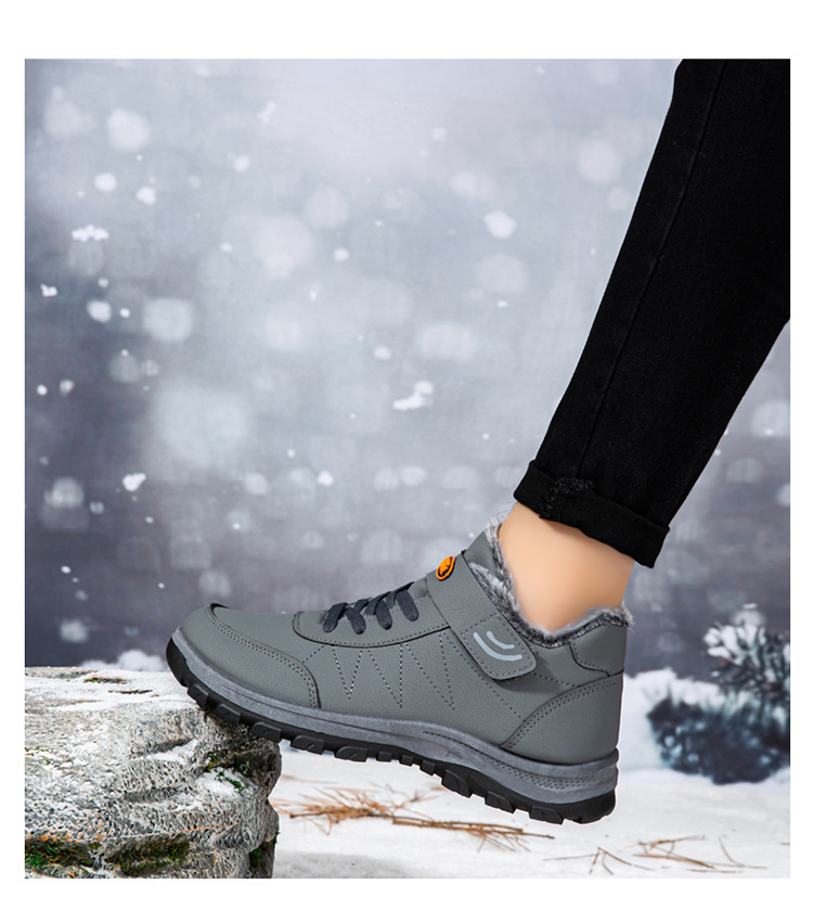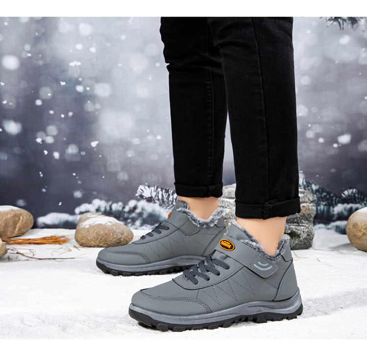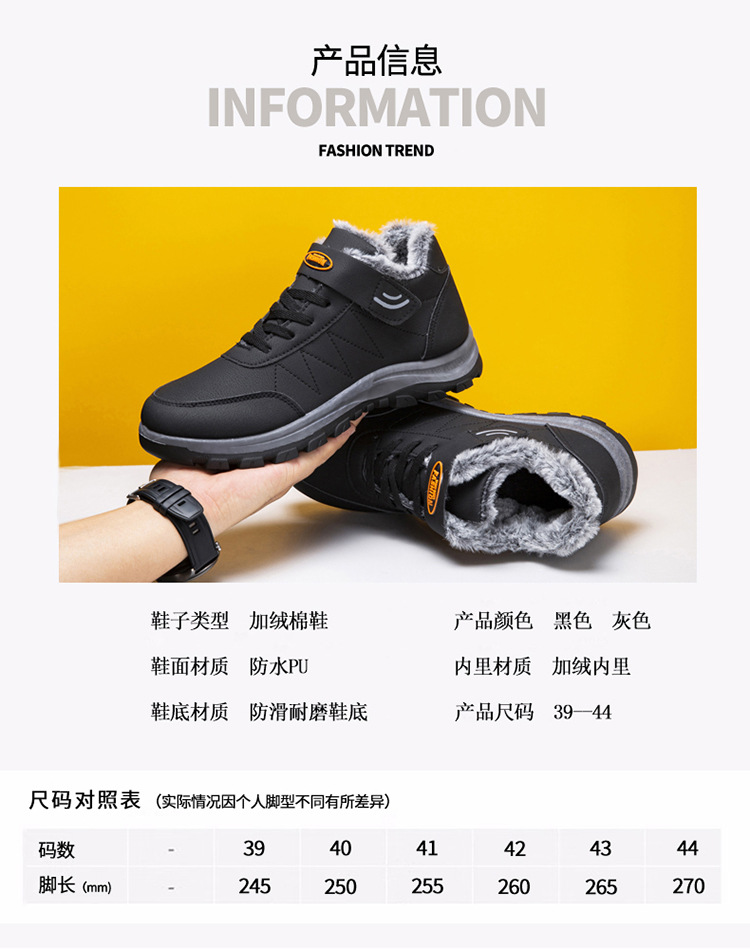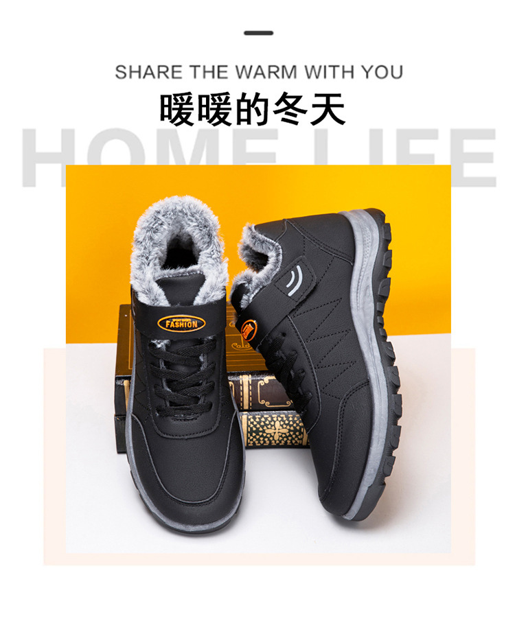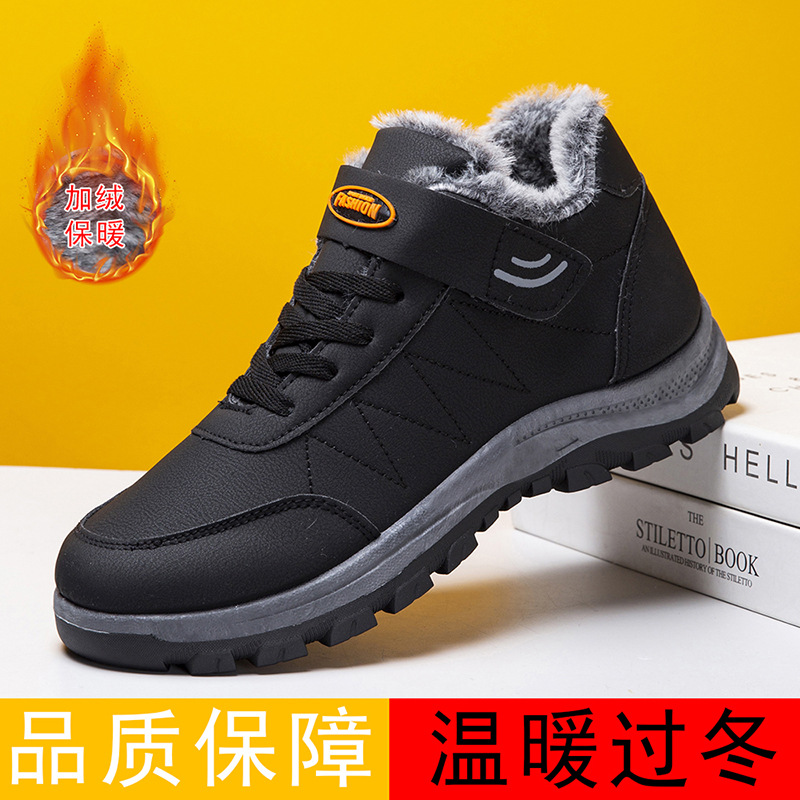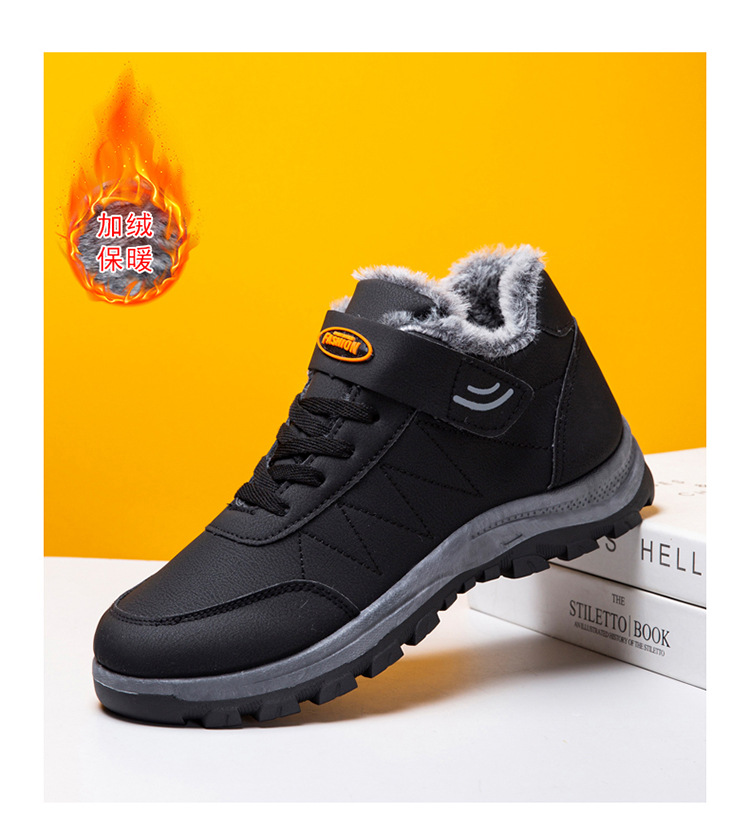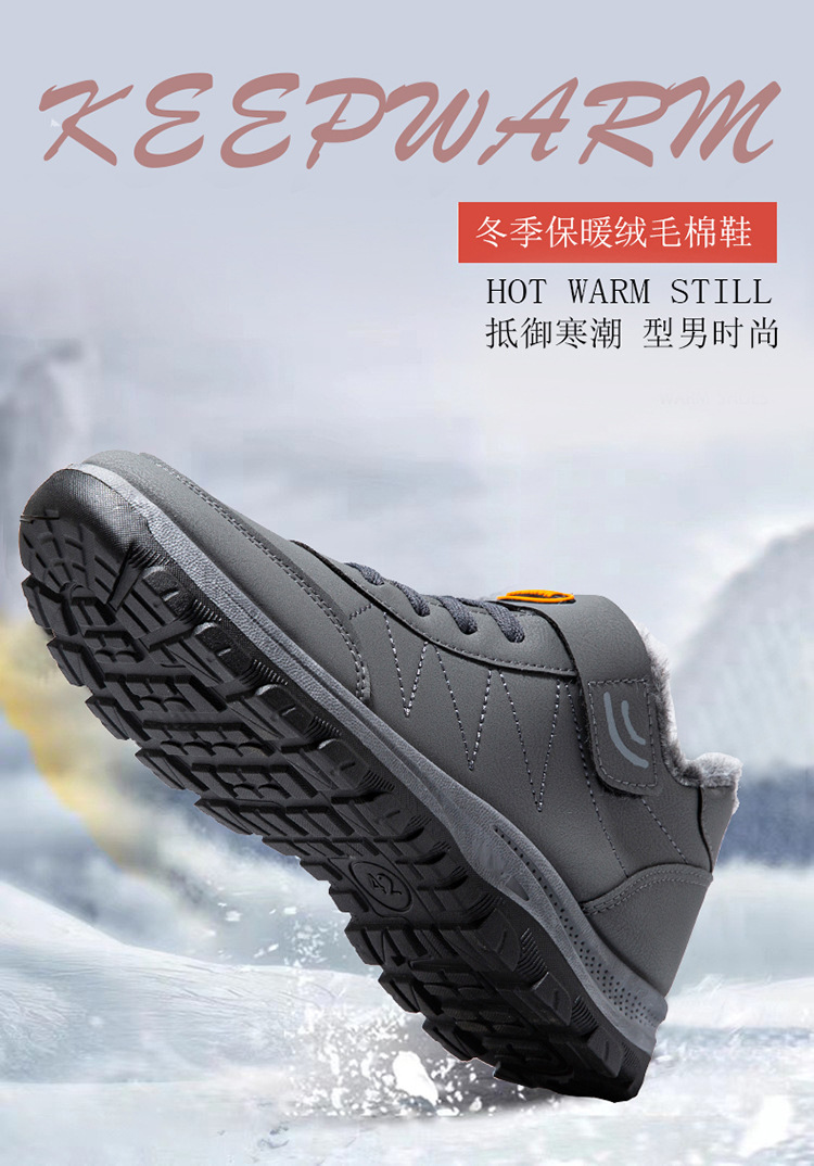 2025 cross-border new arrival cotton shoes outdoor men's thick leather shoes men's winter high-top sneakers walking shoes for the elderly 中文版