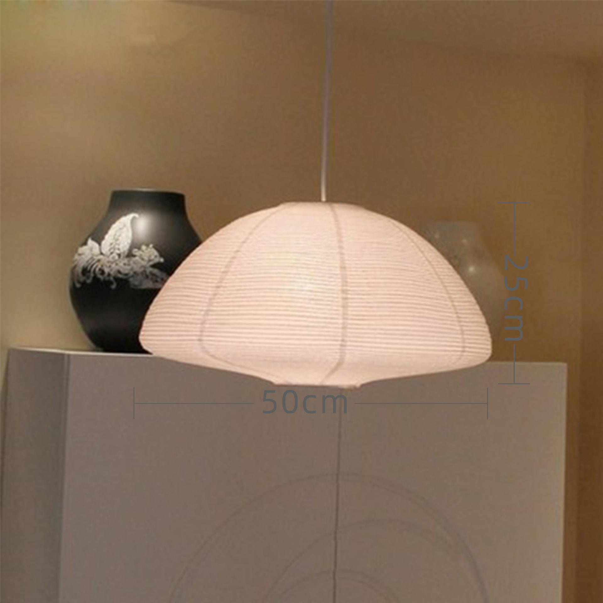 50cm beige round encryption lantern with light cable + lamp holder + warm light bulb