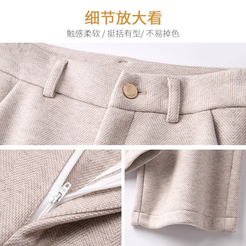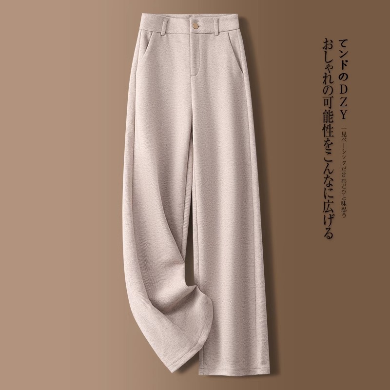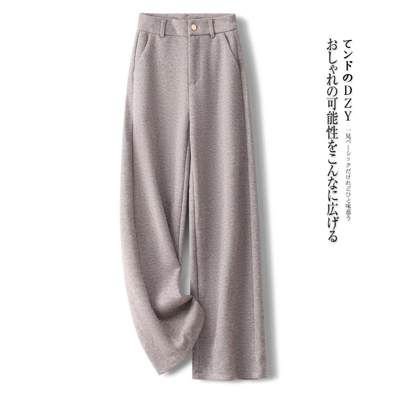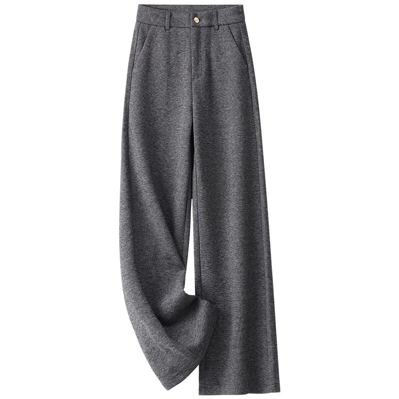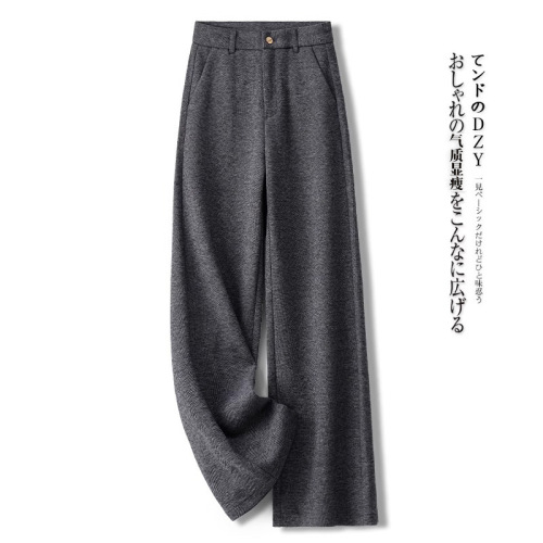 high-grade cashmere wide-leg pants for women autumn and winter 2025 new herringbone pattern straight-leg pants loose draping effect woolen pants 中文版