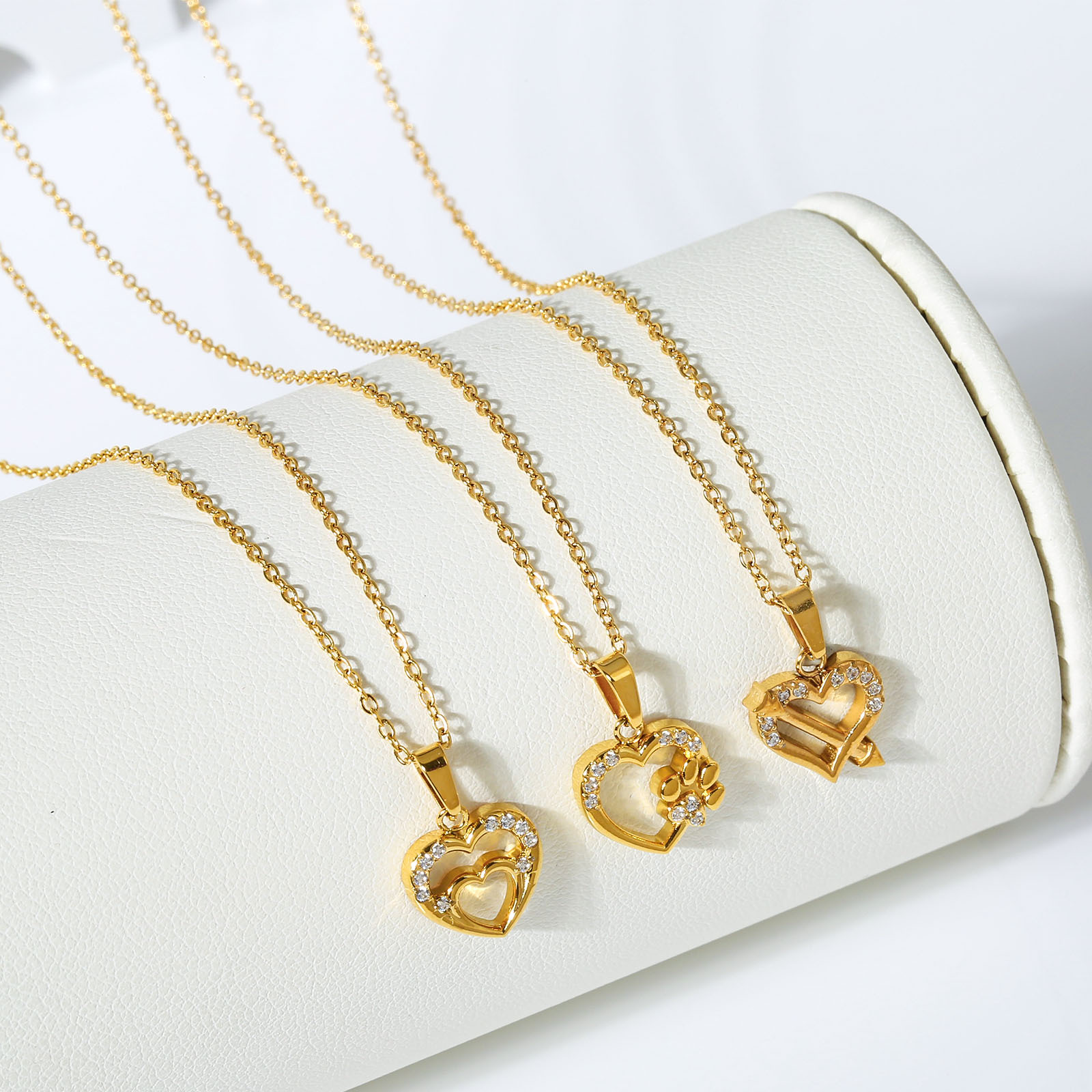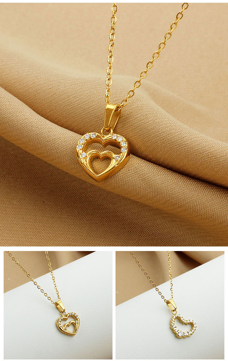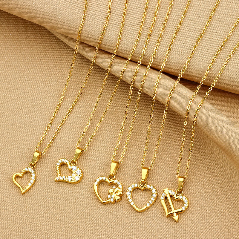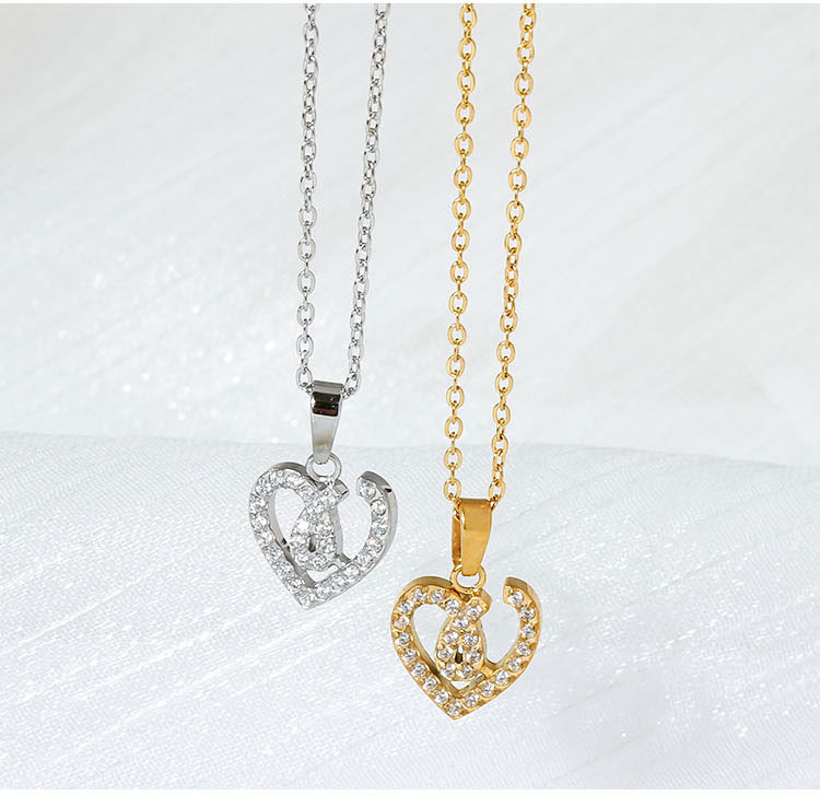 Heart-shaped love necklace with a sense of high-end, versatile, set with zircon, electroplated collar chain, ladies pendant