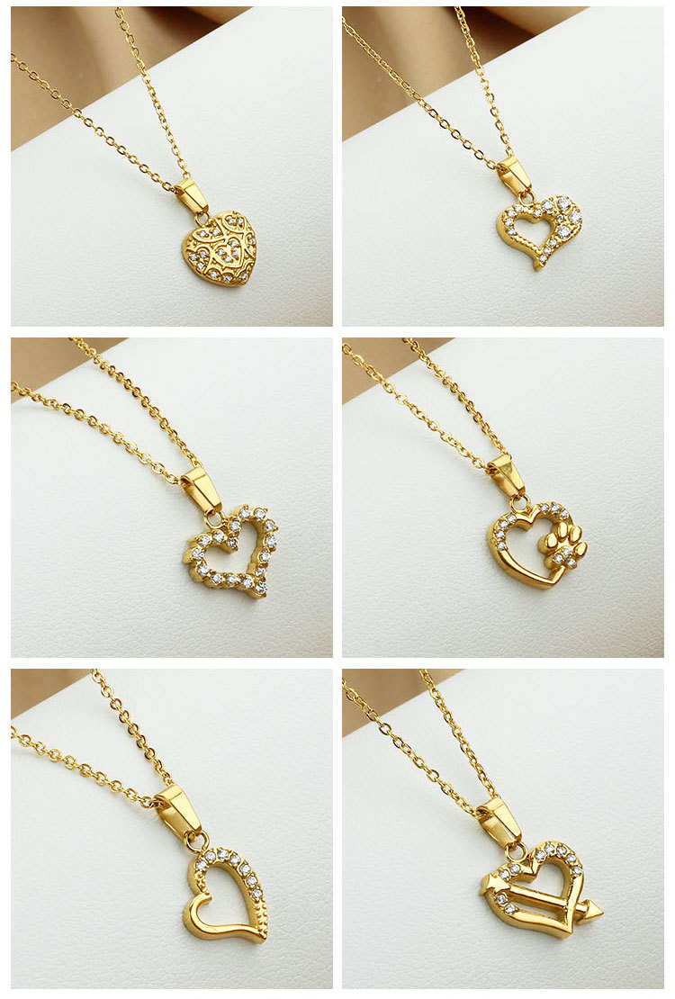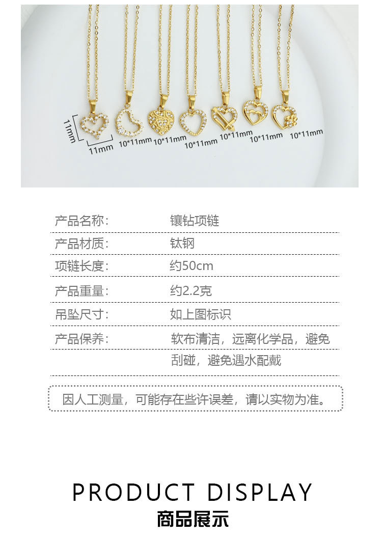 european and american heart shaped love necklace high-grade versatile inlaid zircon electroplated clavicle chain ladies' pendant 中文版