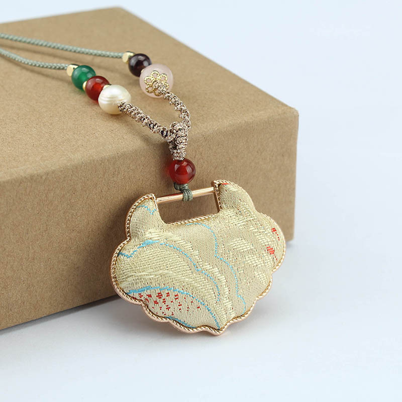 1217-14# single-sided safety lock imitation song dynasty brocade (light yellow) necklace