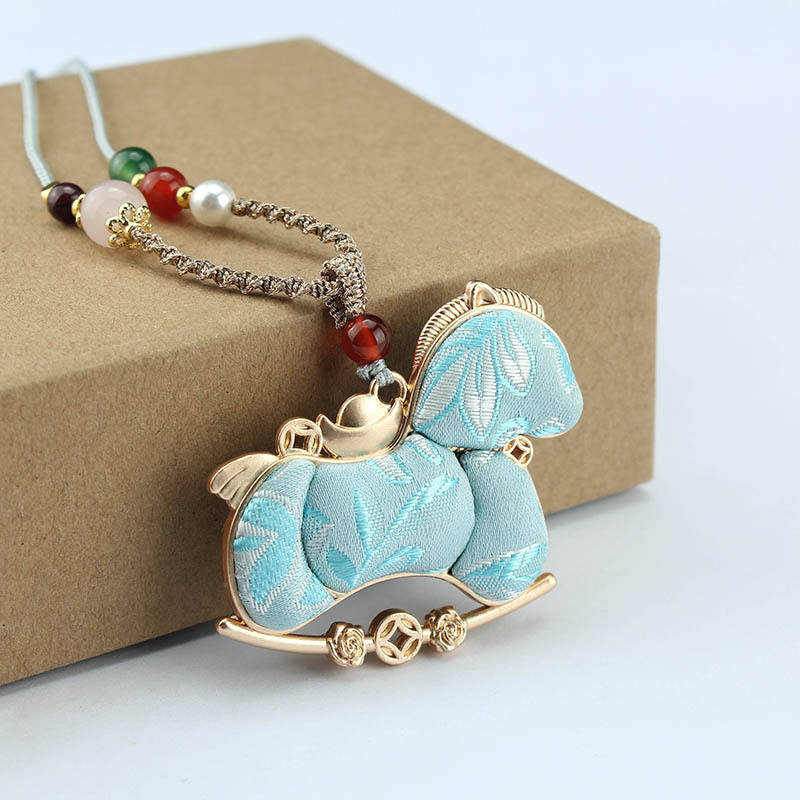 1217-3# double-sided pony imitation song dynasty brocade (light blue) necklace
