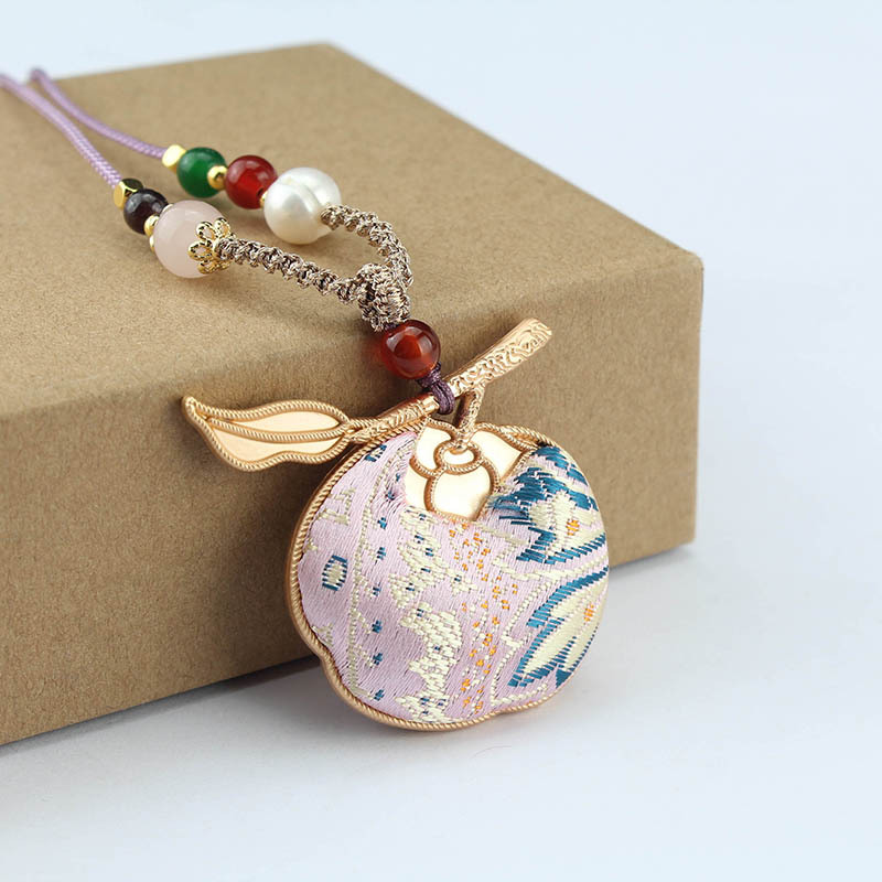 1217-7# double-sided apple imitation song dynasty brocade (pink) necklace