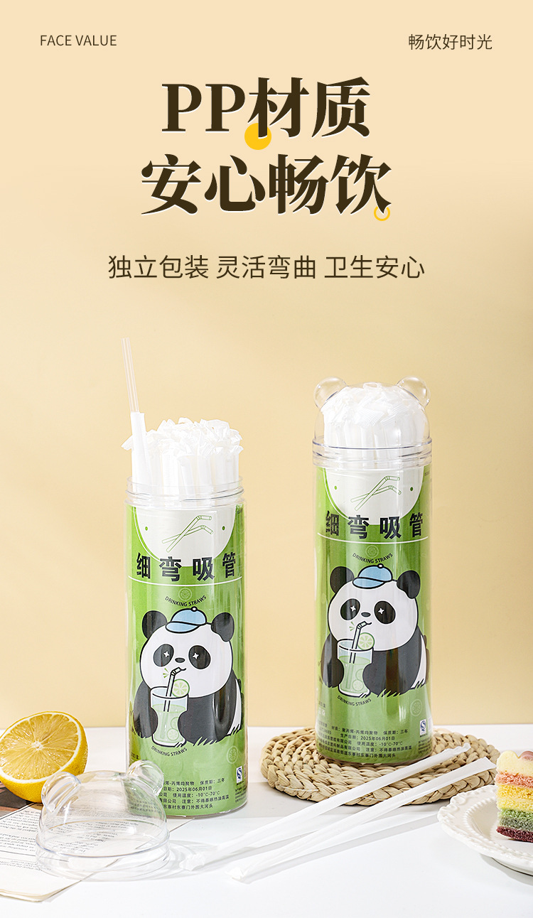panda canned straw (50 pcs/can) + supplement 100 pcs/bag