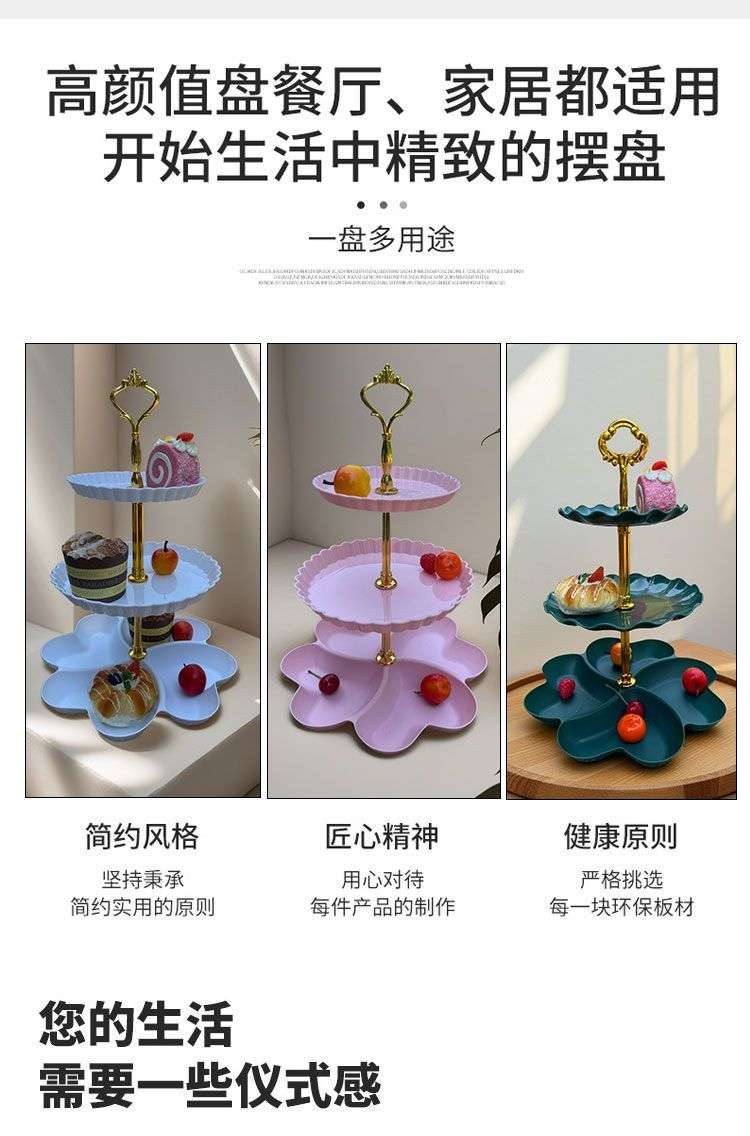 european plastic multi-layer fruit plate living room coffee table candy plate front desk small exquisite cake tray three-level light refreshment shelf 中文版