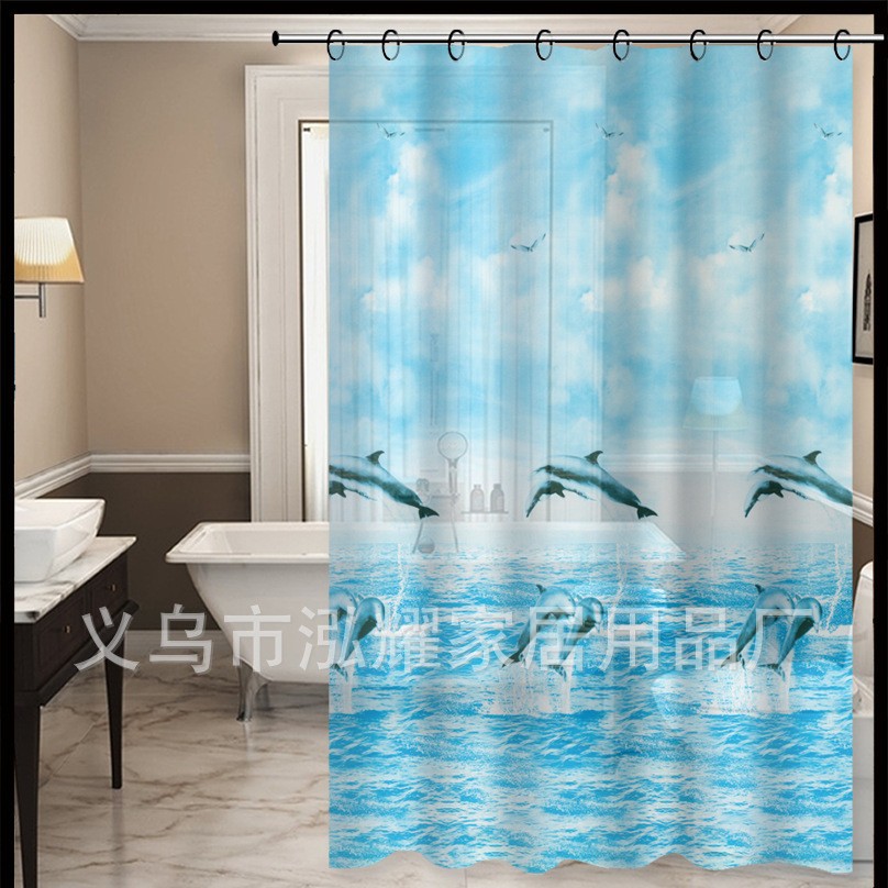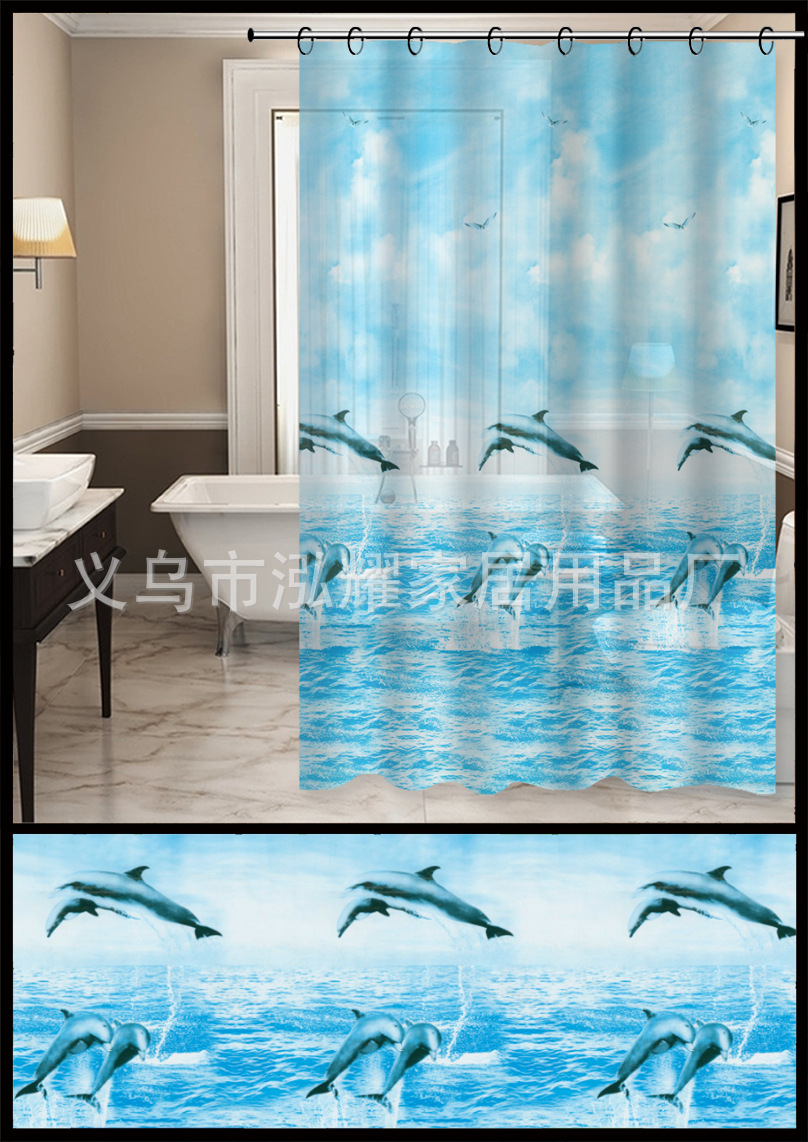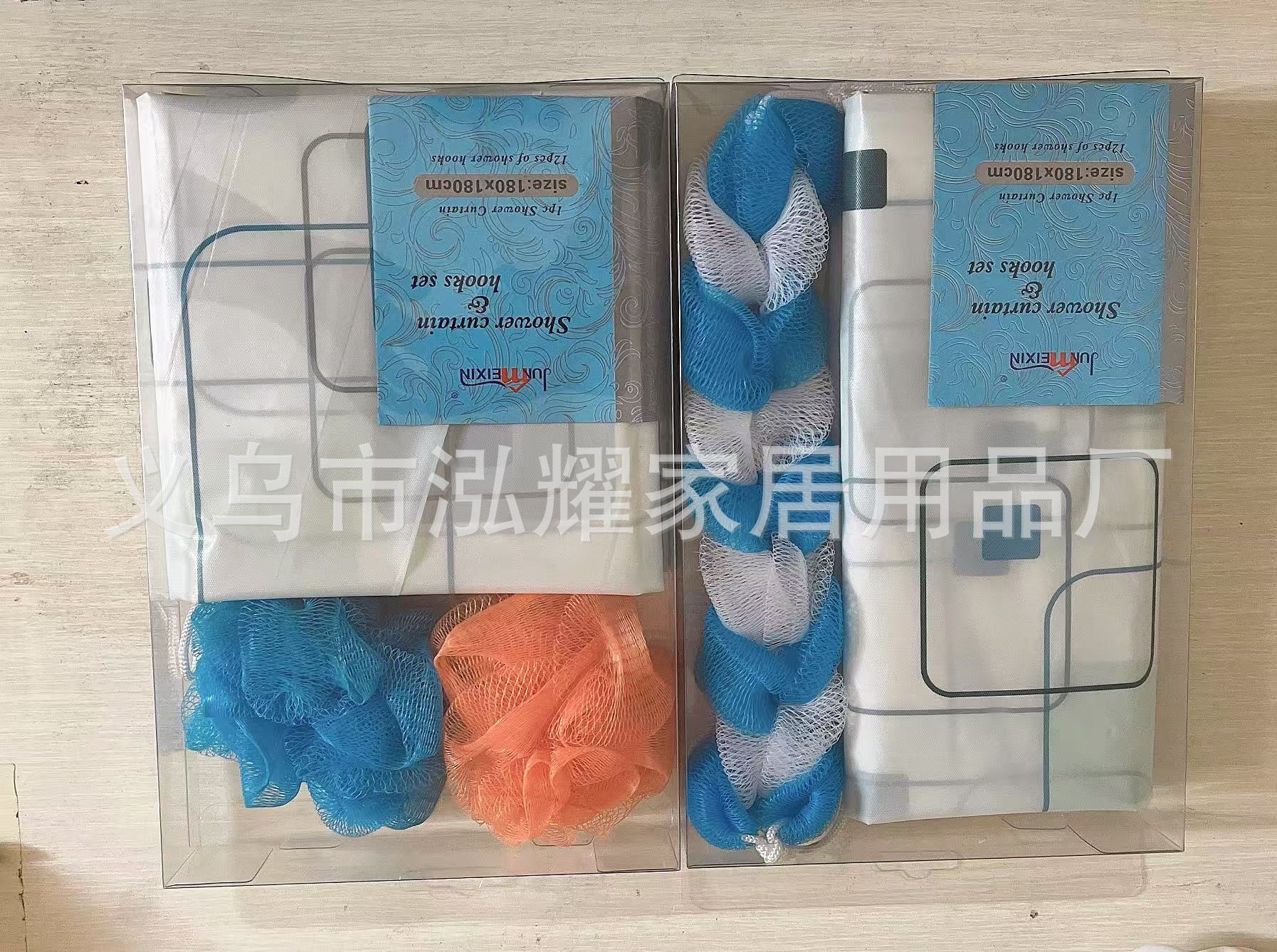 13-piece set nordic style peva printed thickening shower curtain mesh sponge bath ball waterproof and mildew-proof toilet water-retaining curtain 中文版