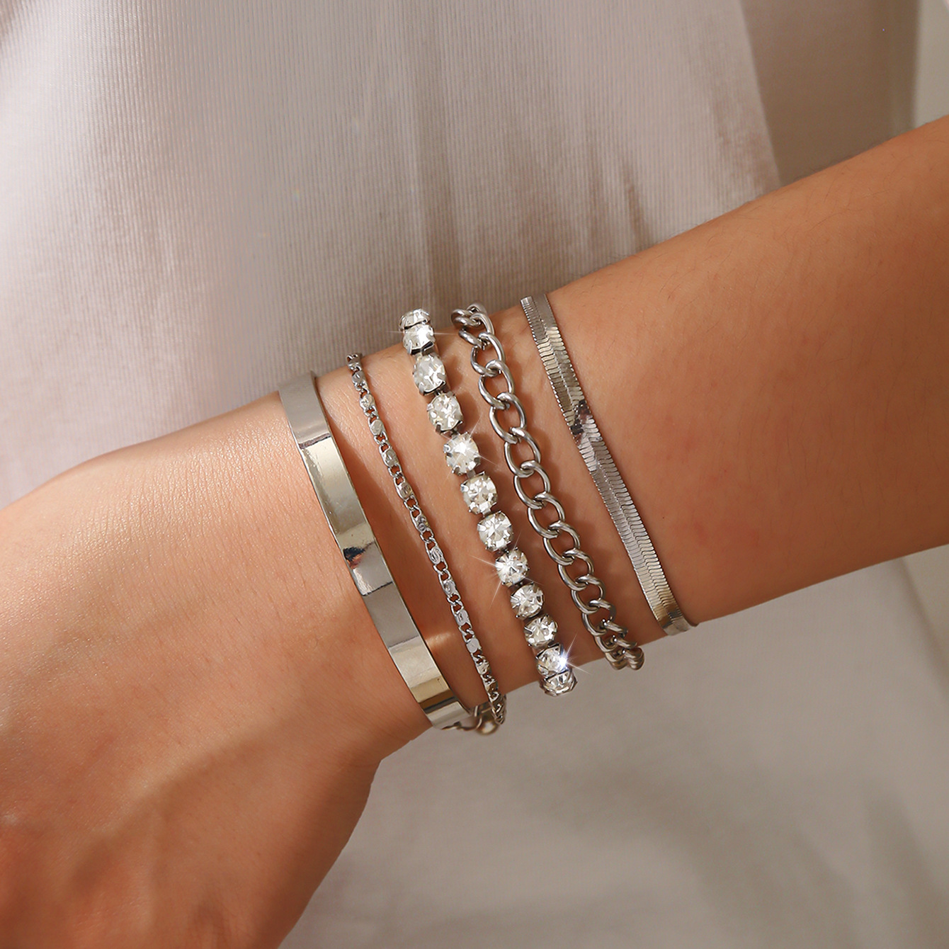silver 5 pieces punk bracelet