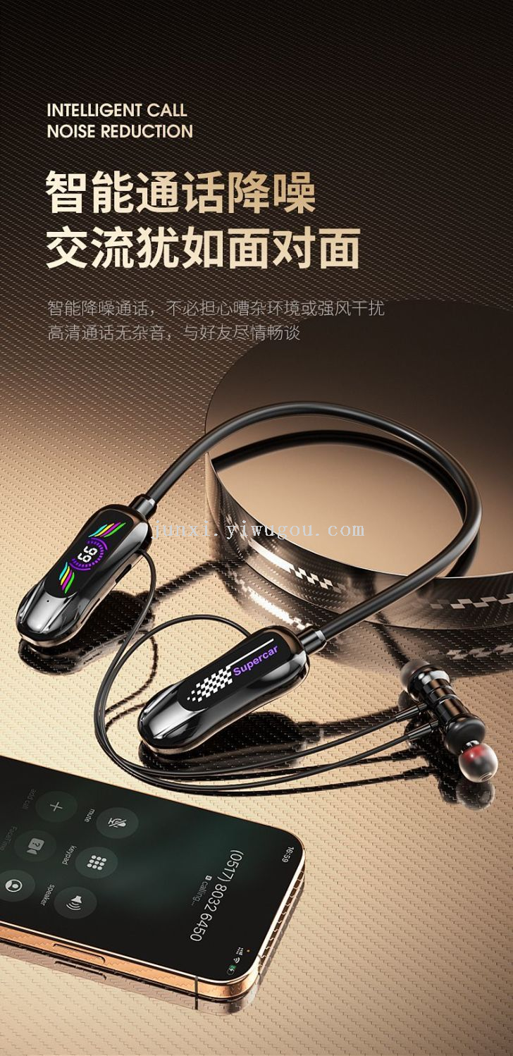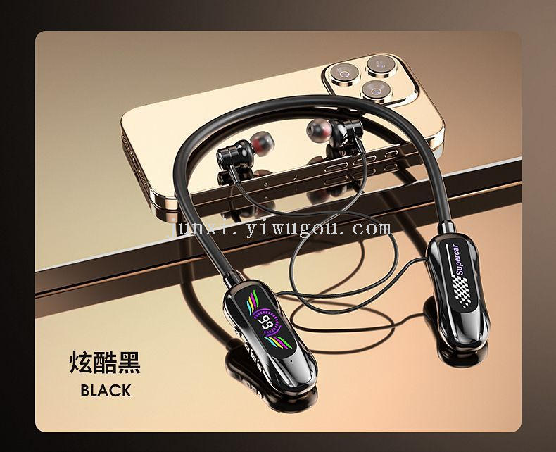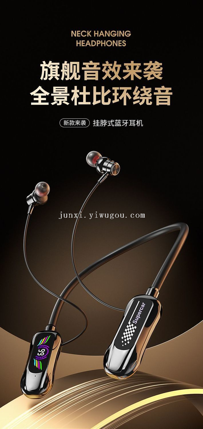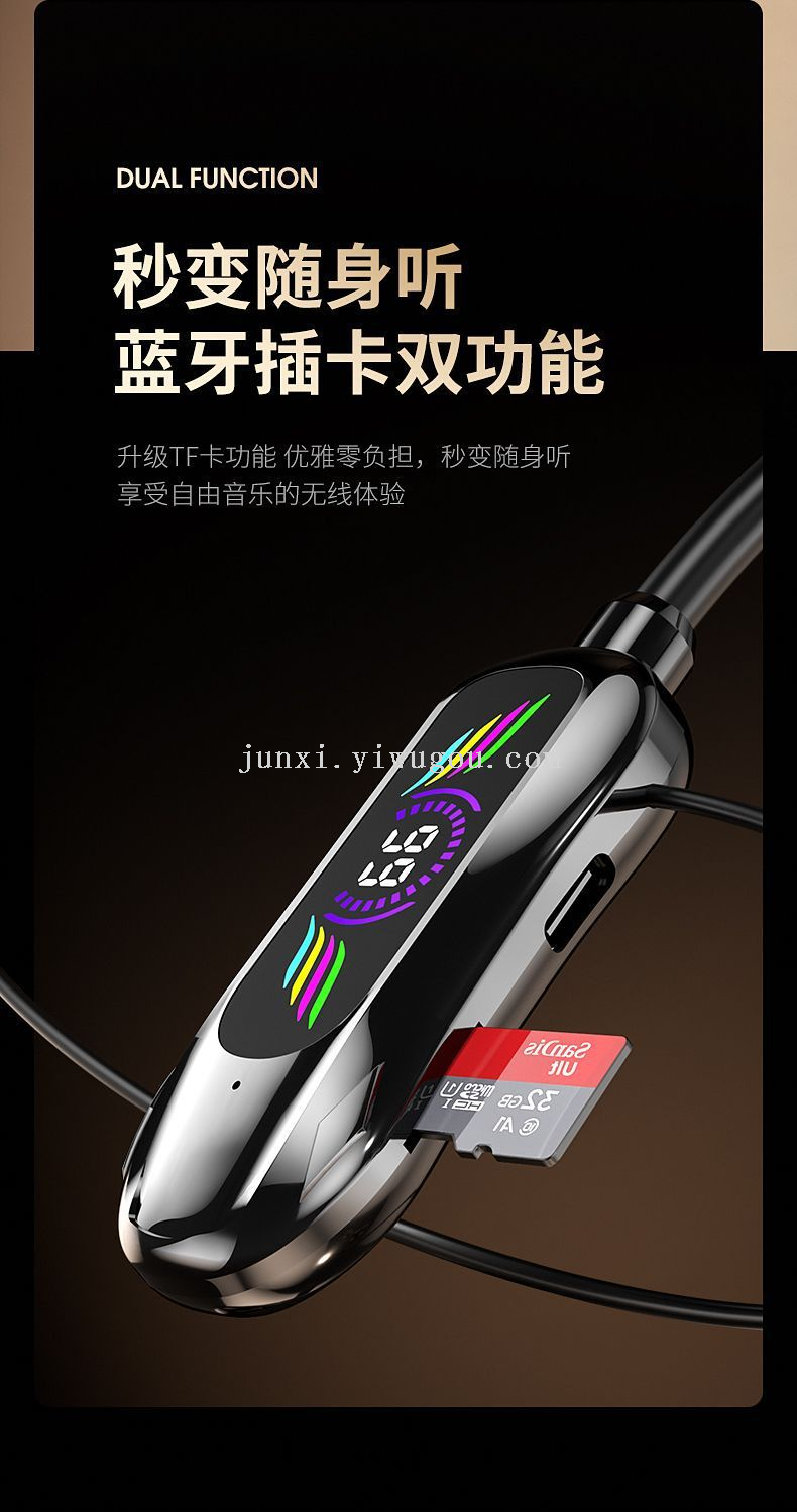 new neck hanging wireless bluetooth headset digital display ultra-long standby halter headset earphone monitor function karaoke straight 中文版