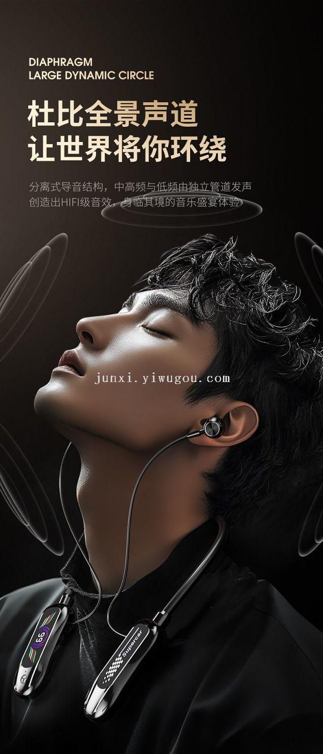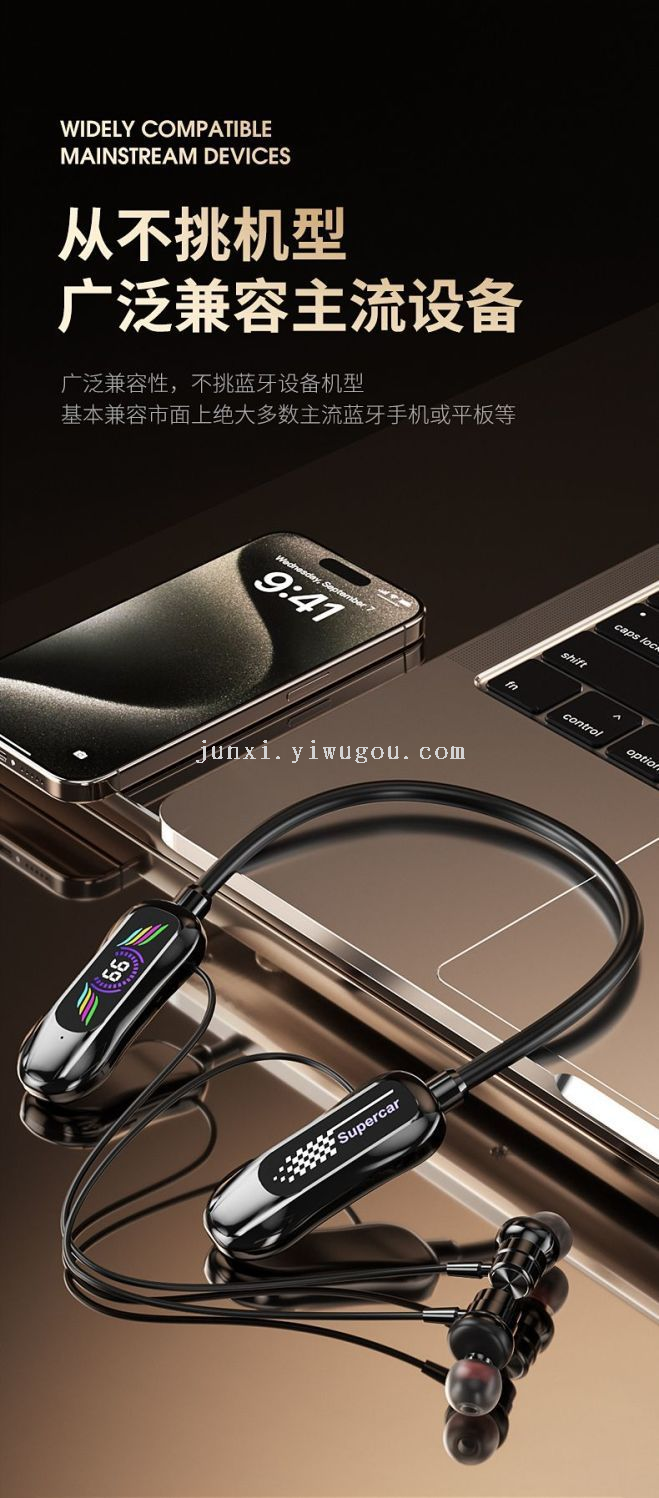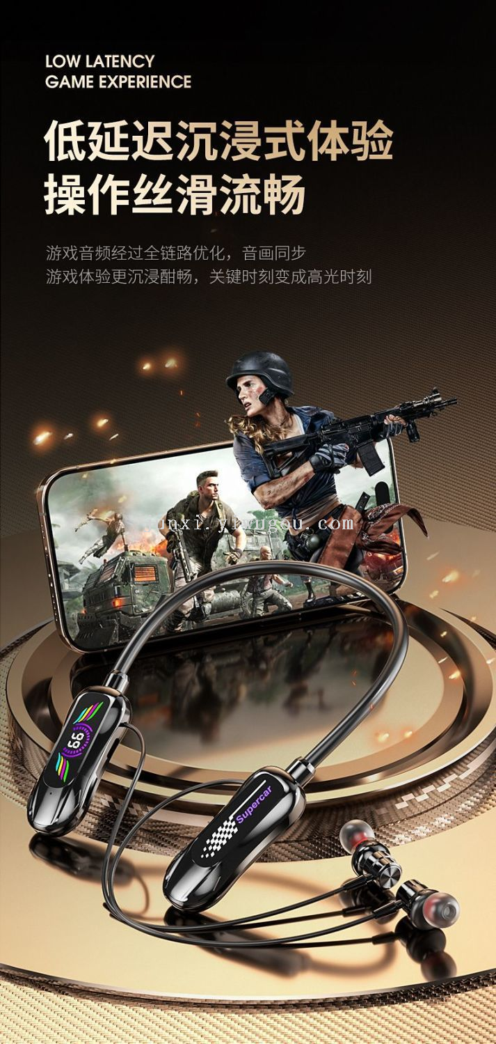 new neck hanging wireless bluetooth headset digital display ultra-long standby halter headset earphone monitor function karaoke straight 中文版