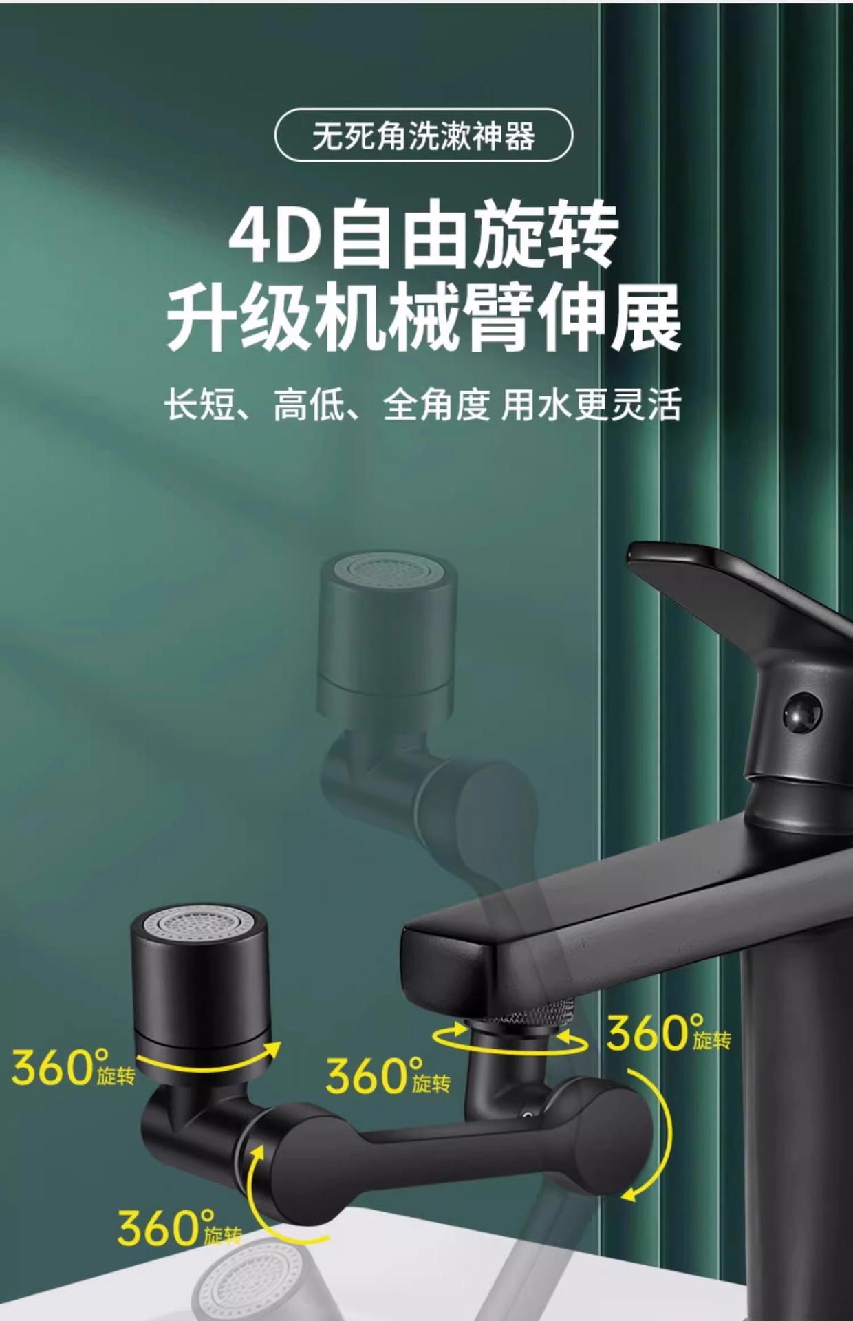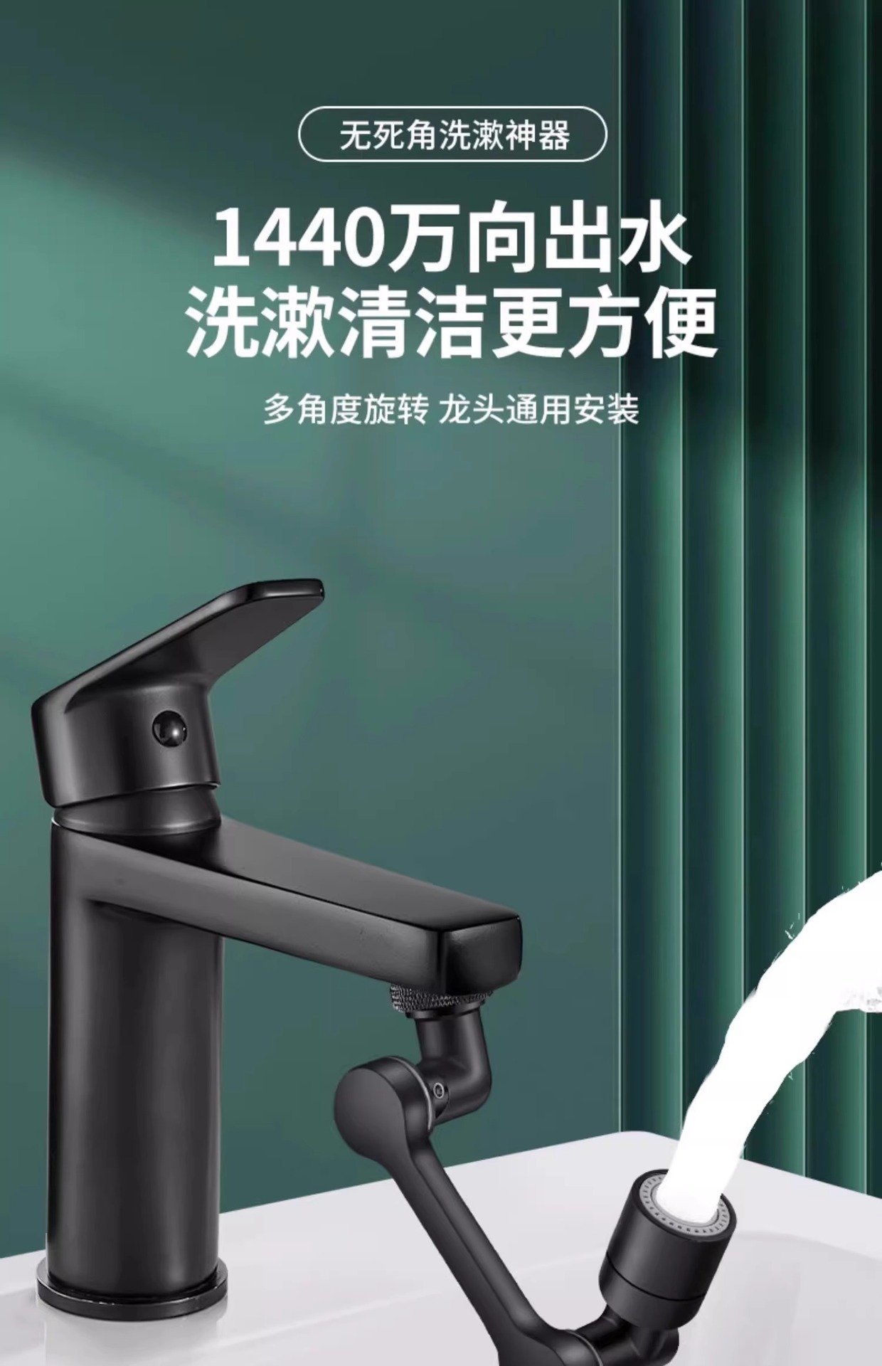 [black abs] single water outlet ◆ 1440 degrees rotation ◇universal interface