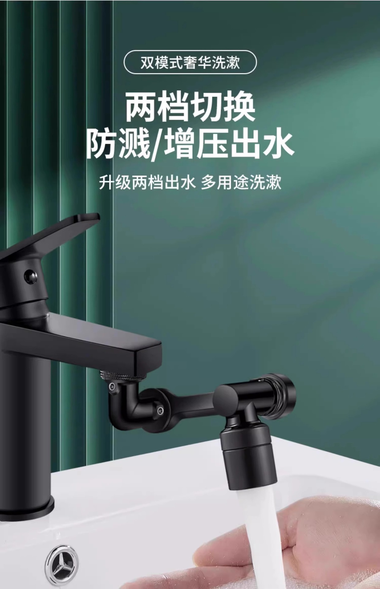 [black abs] double water outlet ◆ 1440 degrees rotation ◇universal interface