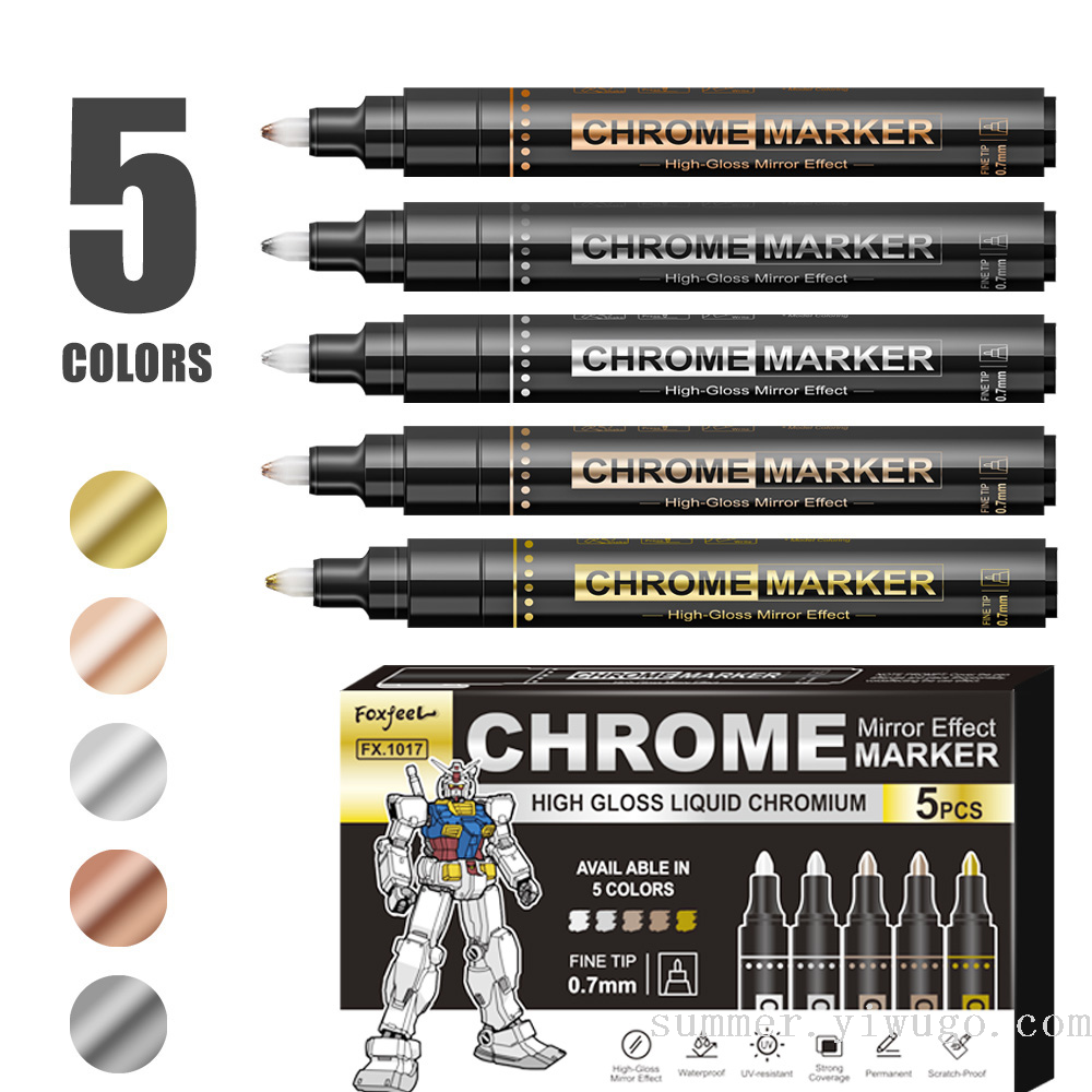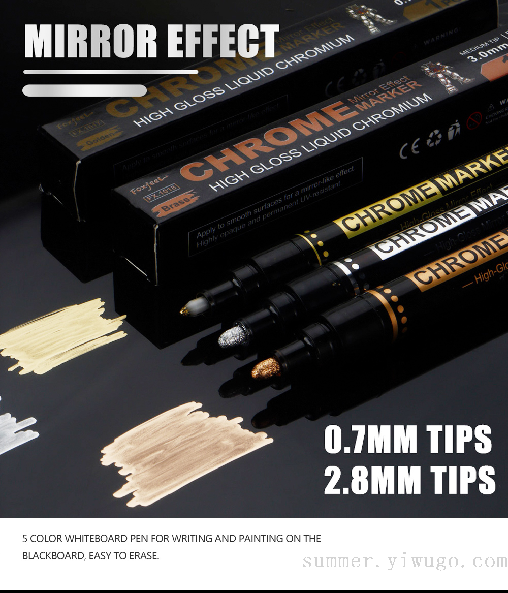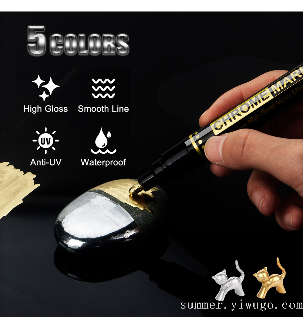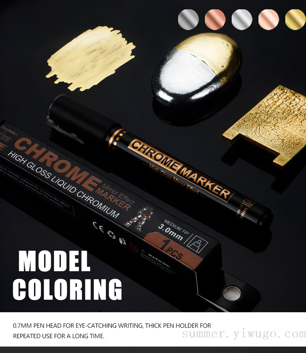 0.7mm mirror marker pen gilding paint repair marker pen chrome strip color supplement marker pen model color marking pen 中文版