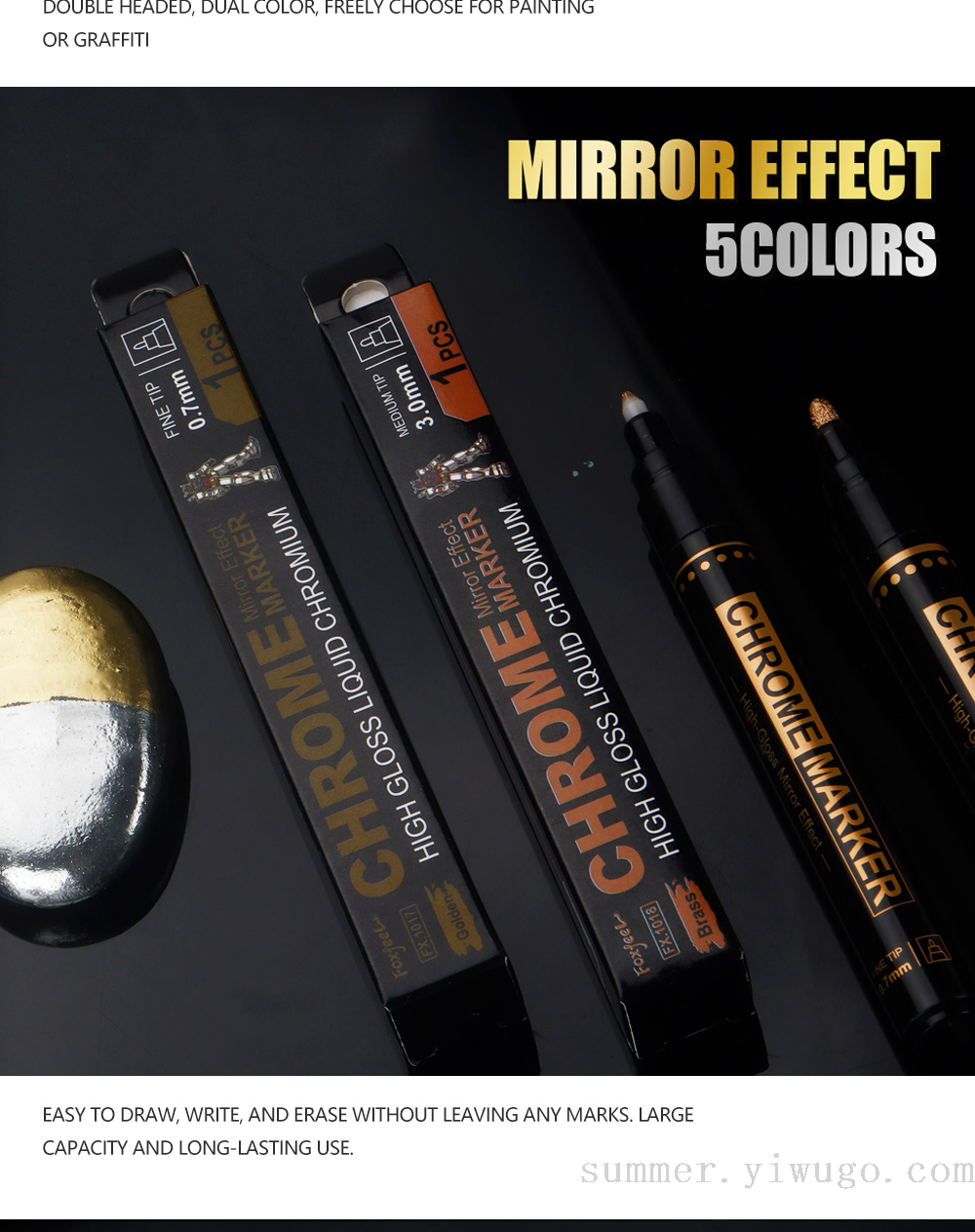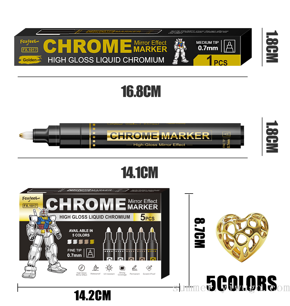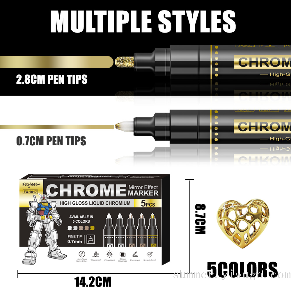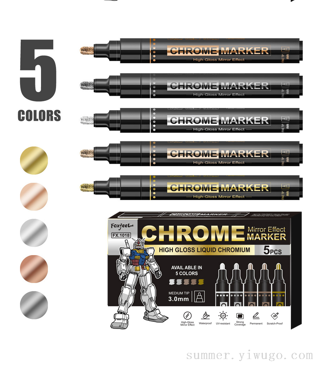 0.7mm mirror marker pen gilding paint repair marker pen chrome strip color supplement marker pen model color marking pen 中文版