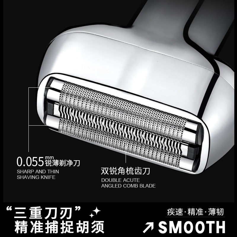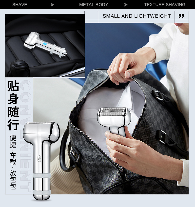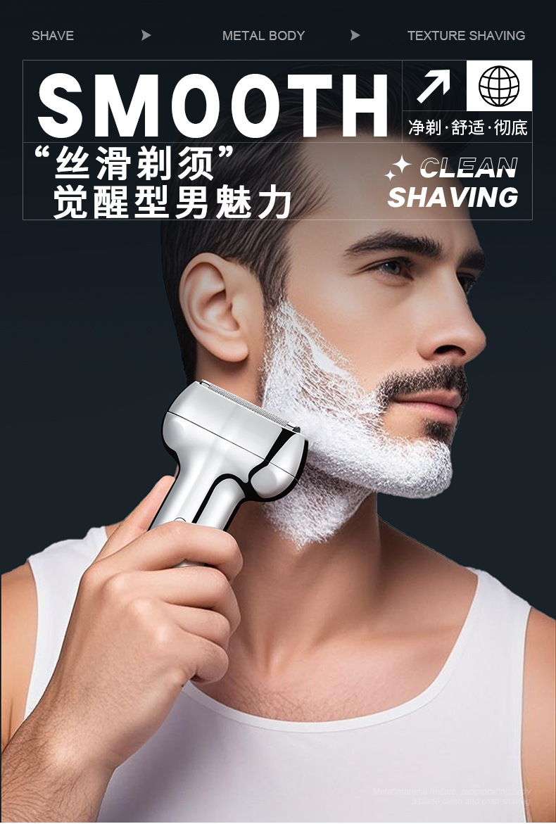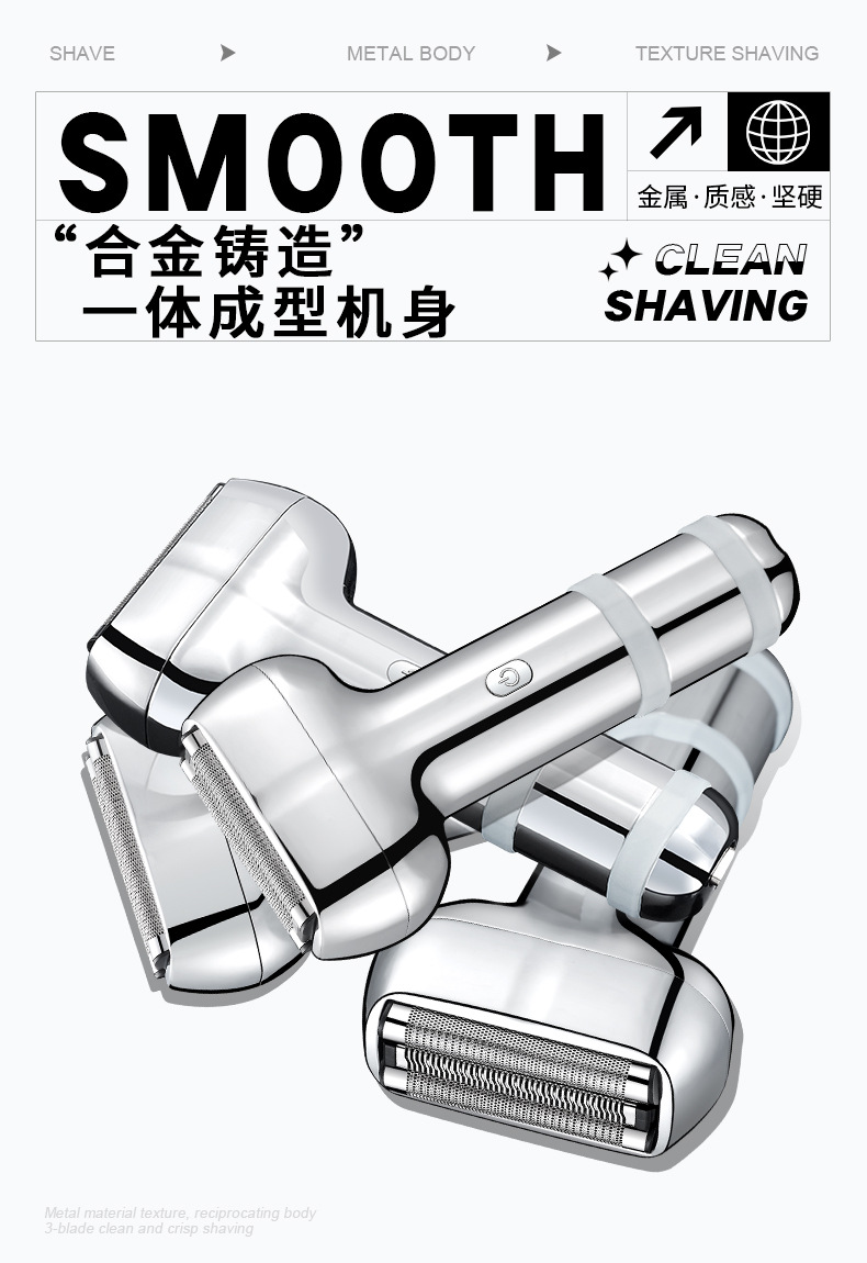 three cutter head suspension type cutter head reciprocating electric shaver all metal material electric display lamp fully washable male gift 中文版