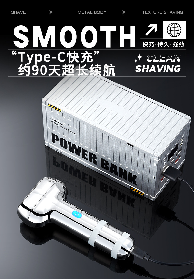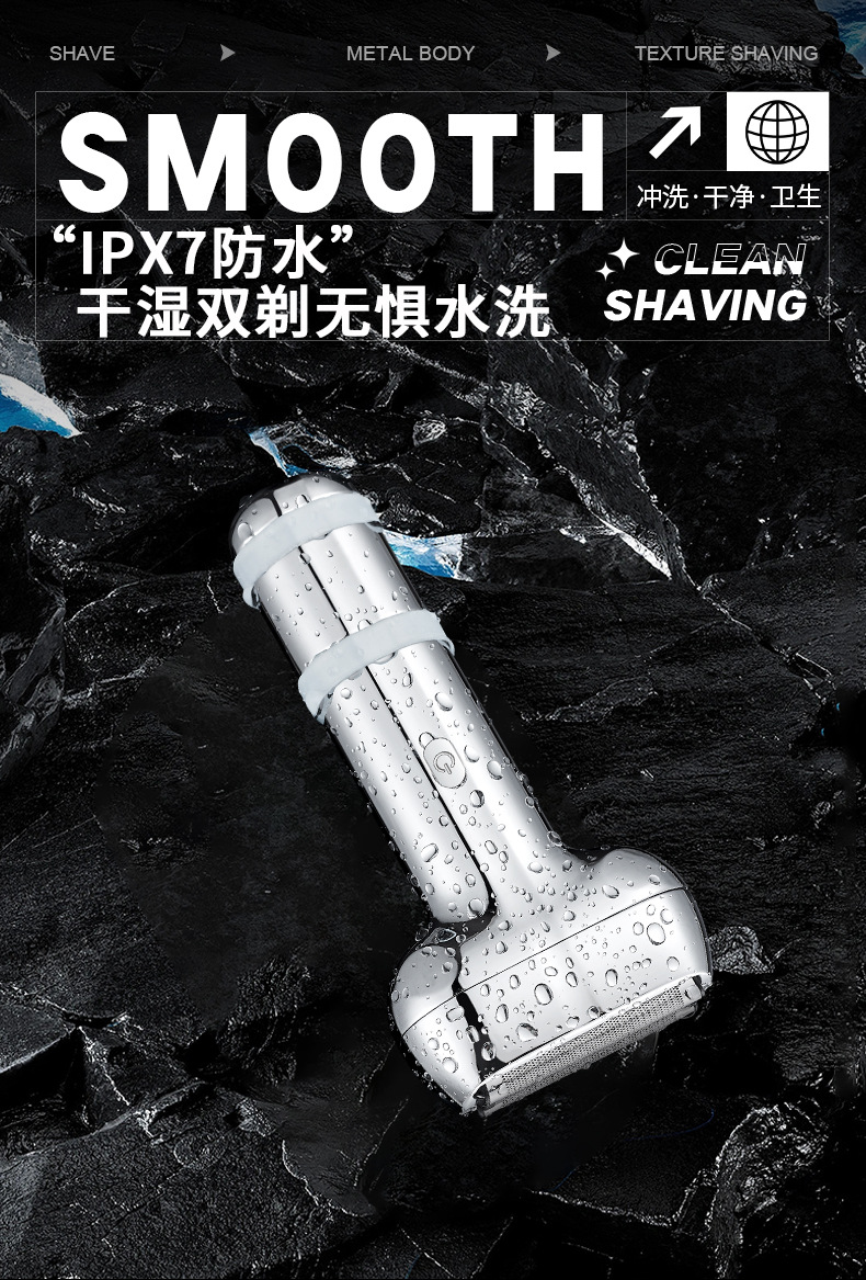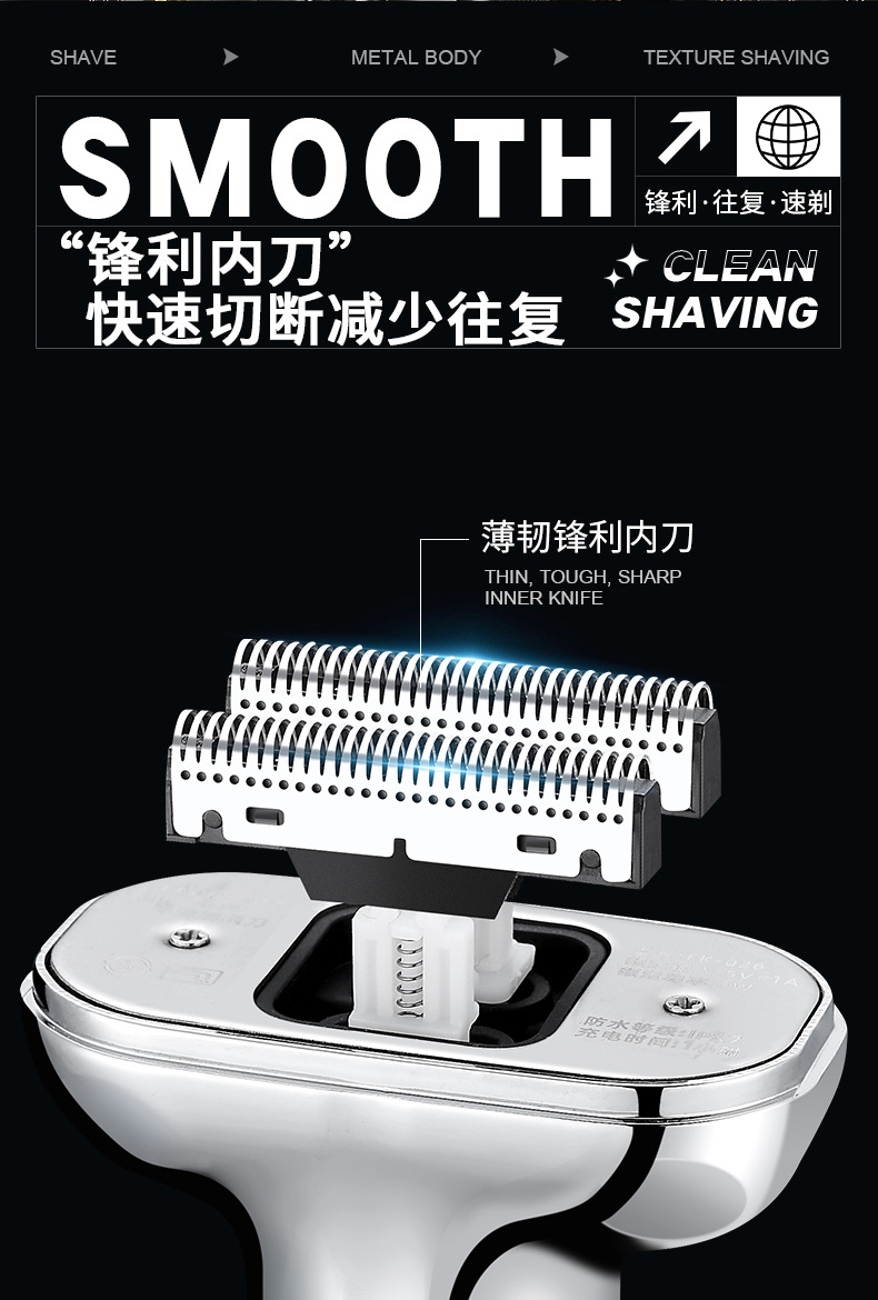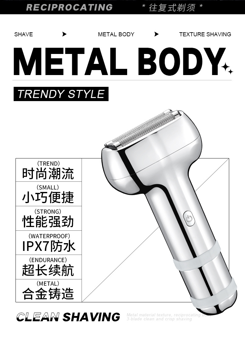 three cutter head suspension type cutter head reciprocating electric shaver all metal material electric display lamp fully washable male gift 中文版