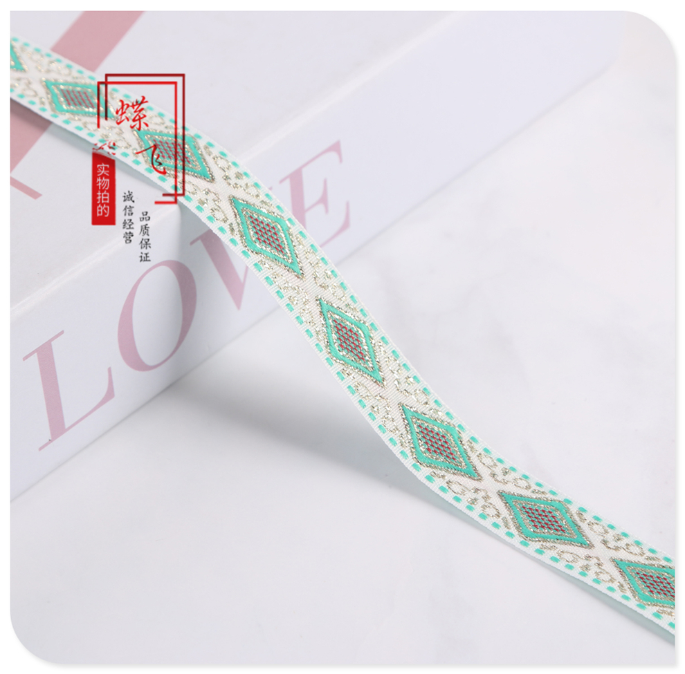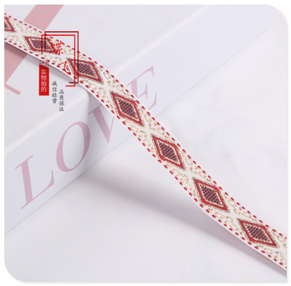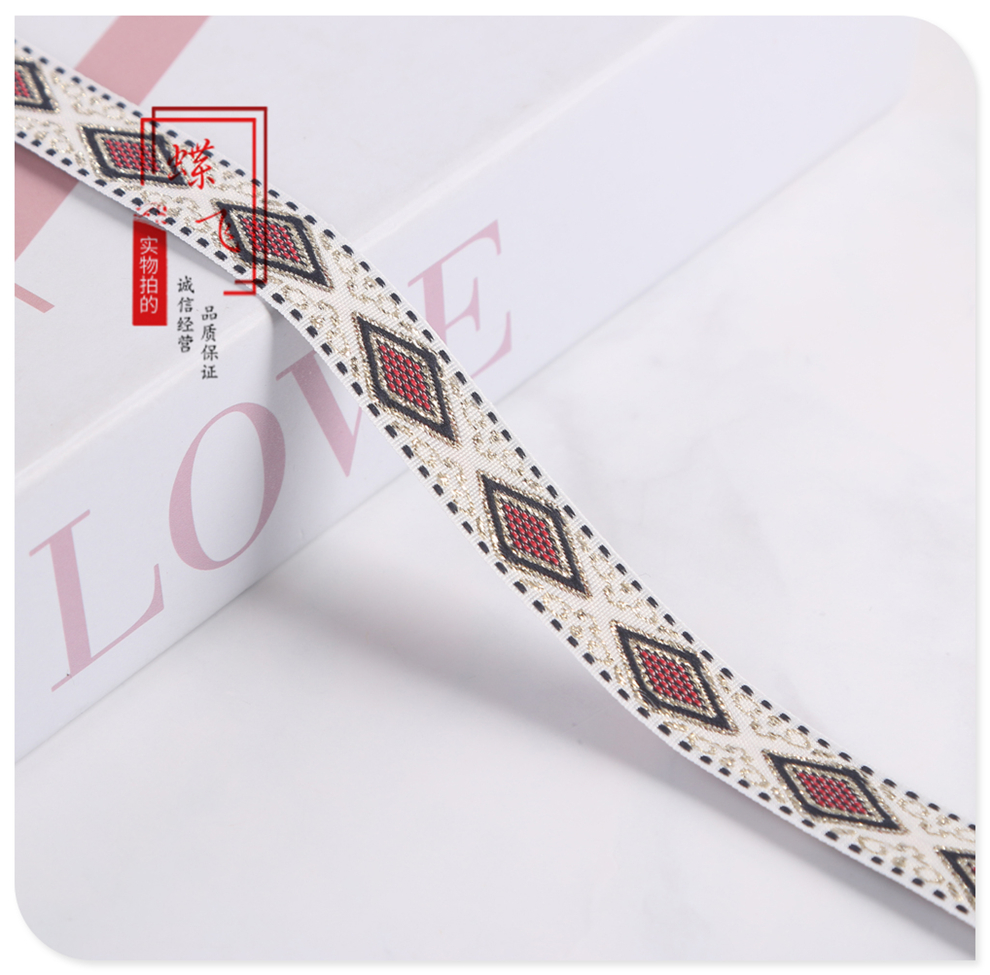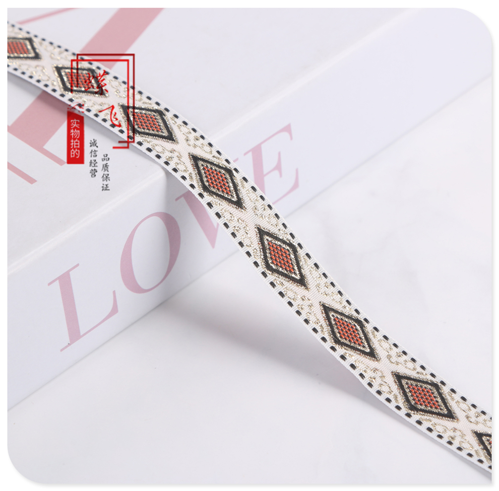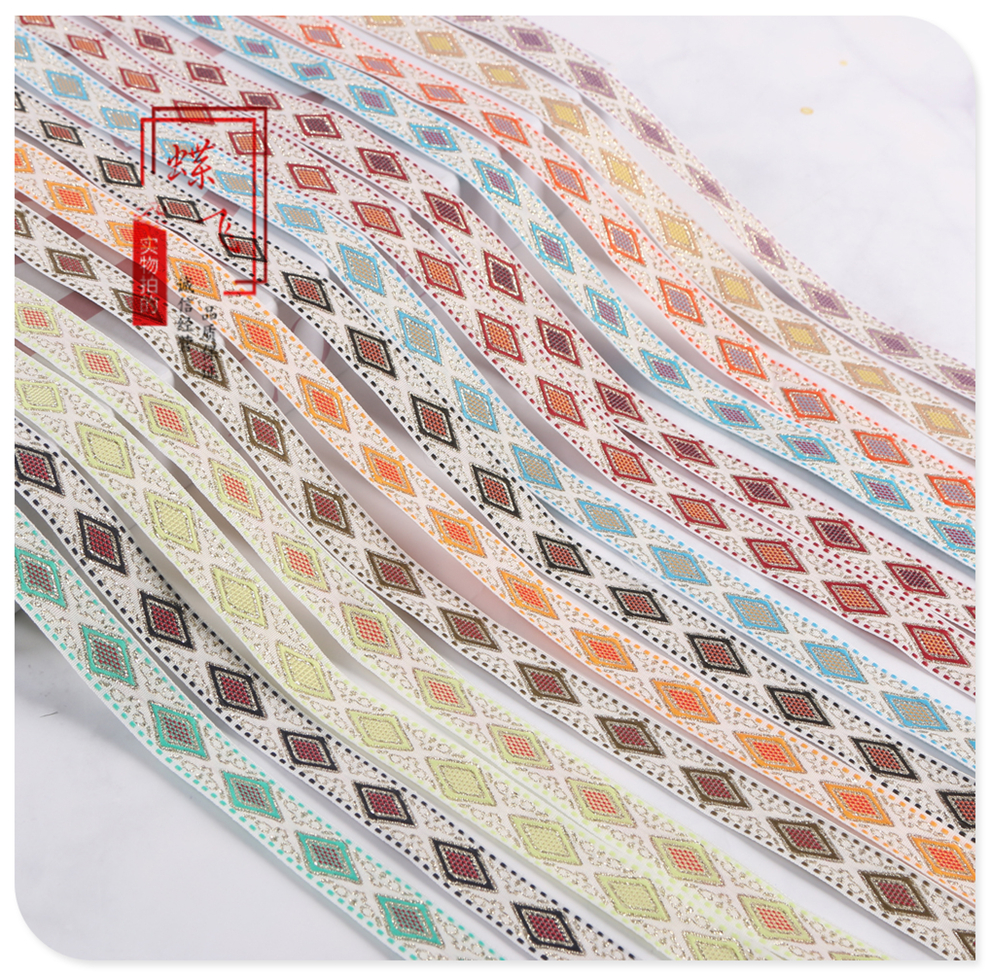 1.5cm wide mixed color jacquard ethnic ribbon rhombic embroidery clothing accessories home textile luggage accessories factory direct sales 中文版
