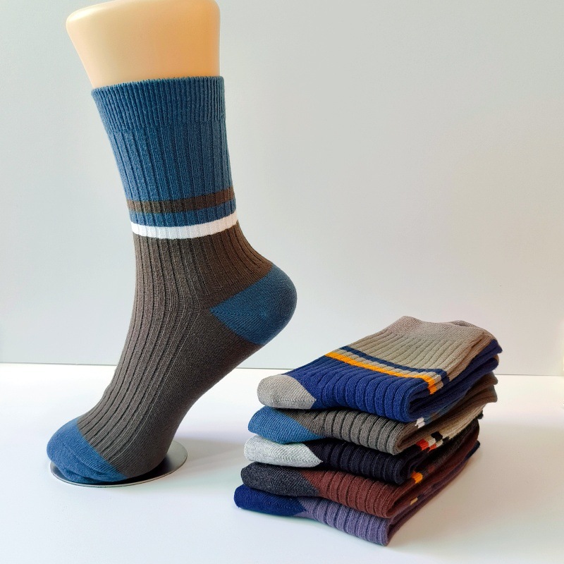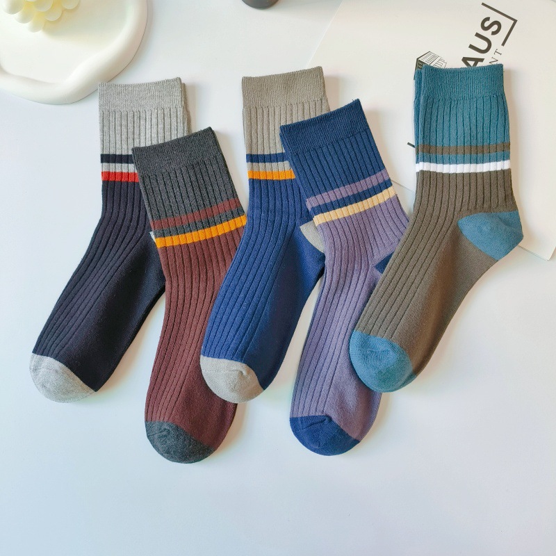 男士拼色双针中筒袜子 袜子包装和图片一样,每双都带卡纸和挂钩, 商超品质,有条形码