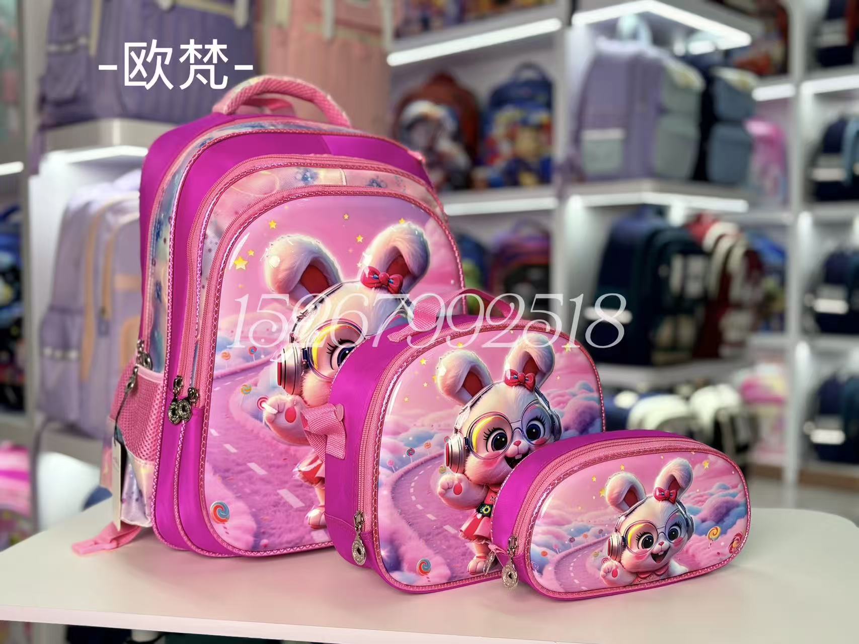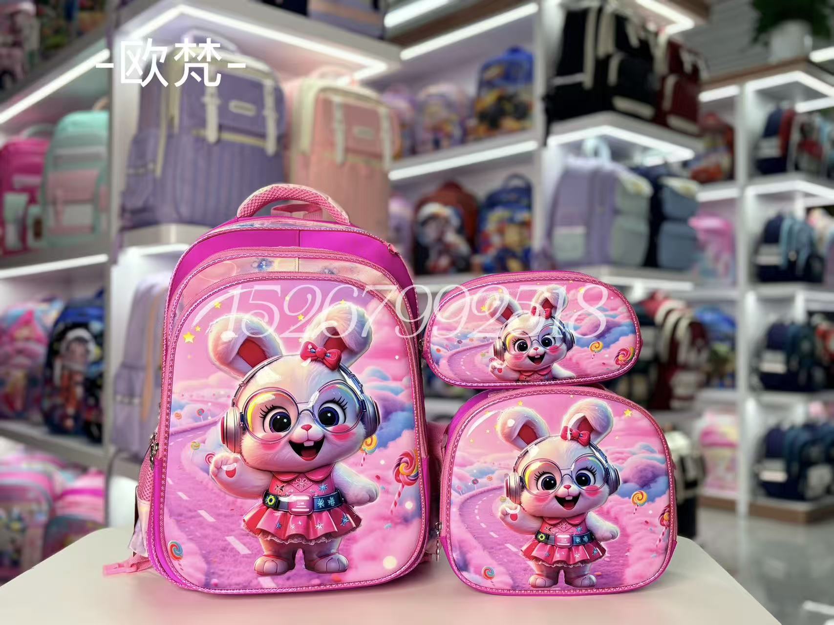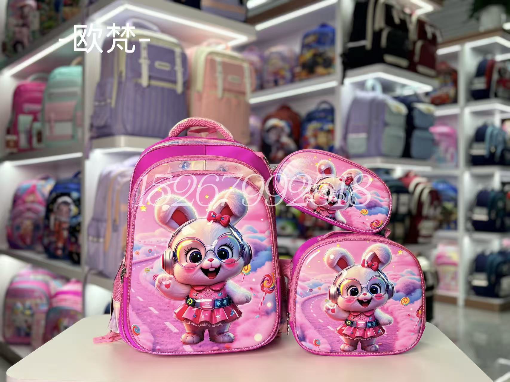 16-inch three-piece set (nylon 230 leather phone case) hard shell children's schoolbag pencil case lunch bag school bag cartoon schoolbag 中文版