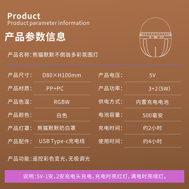 tumbler panda silent colorful lights bedside bedroom small night lamp for children female birthday present creative toys 中文版