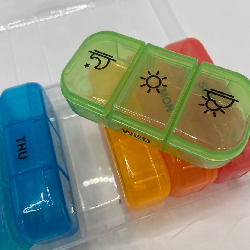 21-compartment rainbow medicine box, 7-day weekly 21-compartment medicine box, classification box, portable plastic compartment medicine box