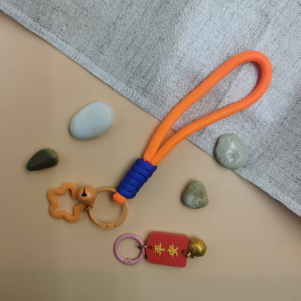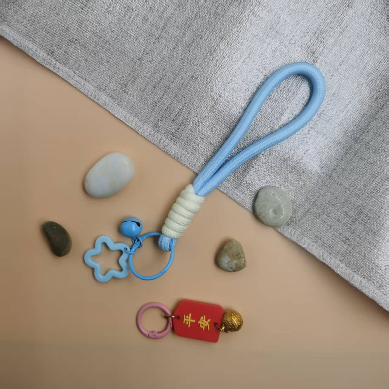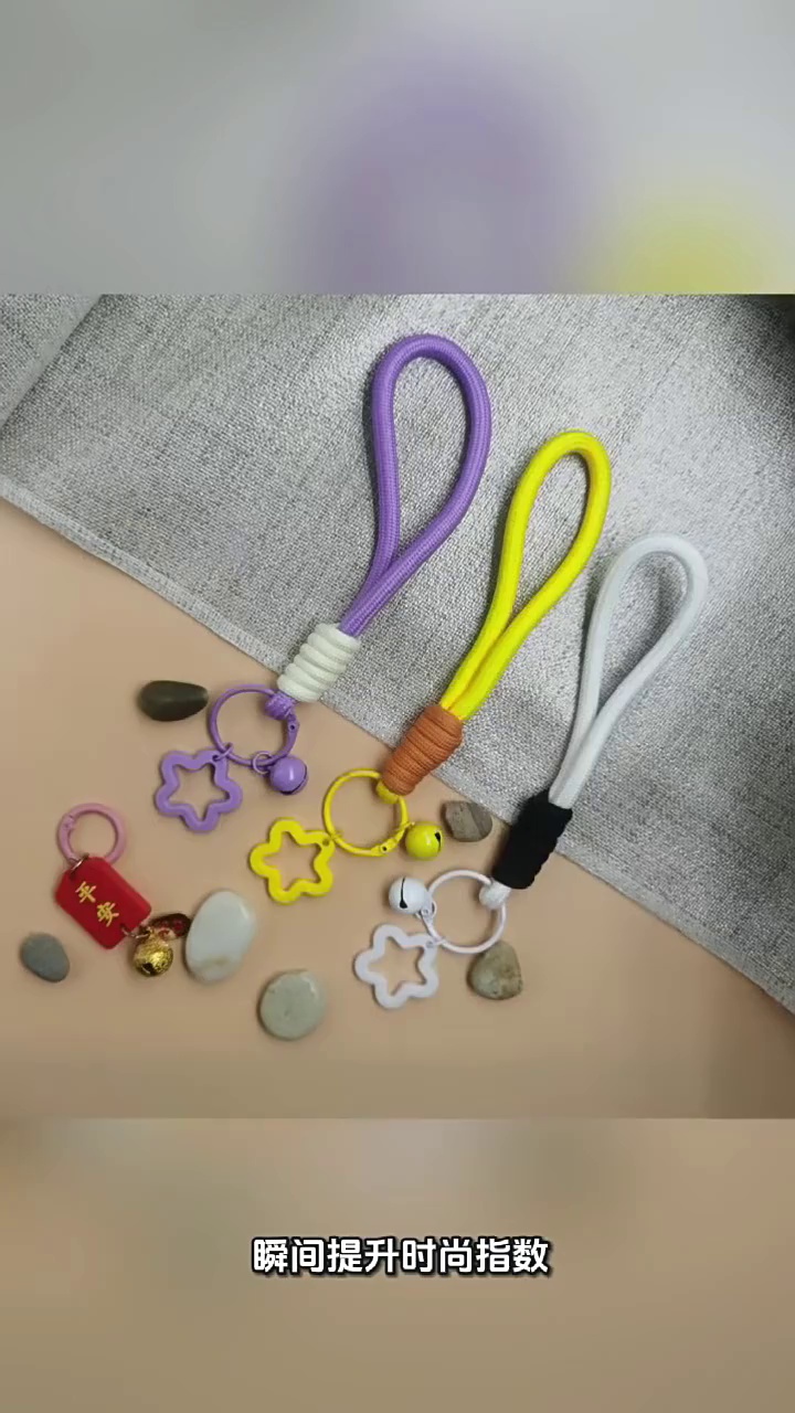 厂家批发五角星铃铛打结手机钥匙扣绳防丢手机挂绳彩色创意钥匙扣