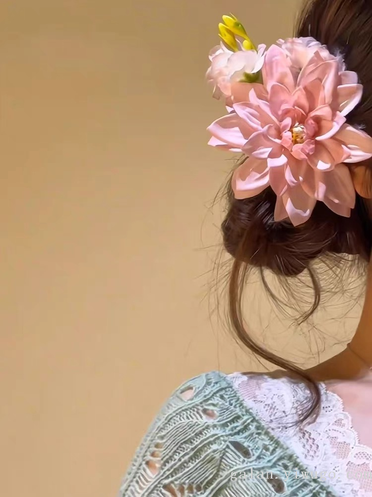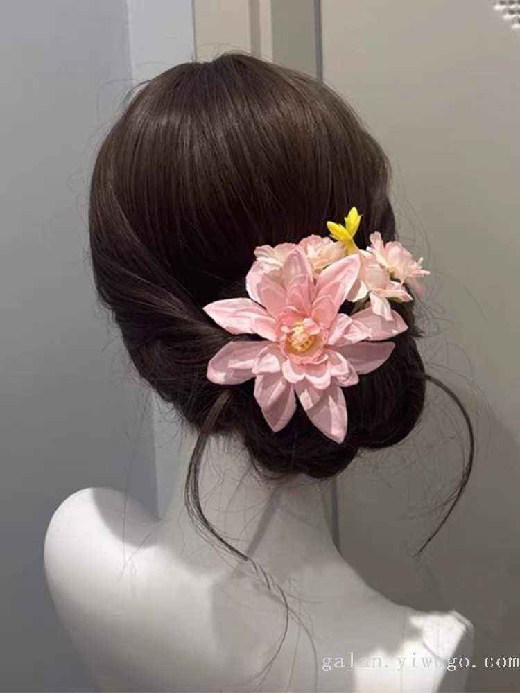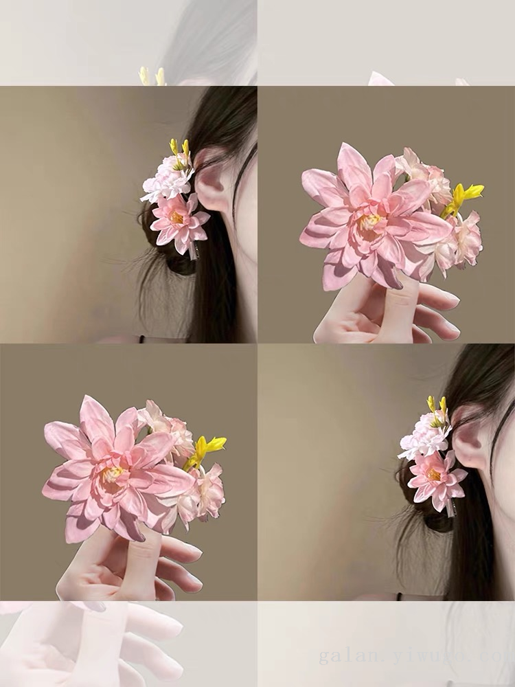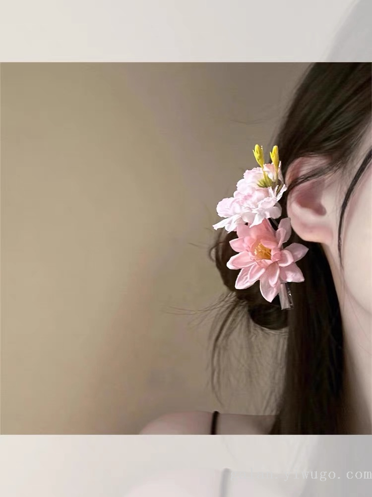 jia lan garland pink flower barrettes female side bun artificial rose headdress flower seaside shooting 中文版