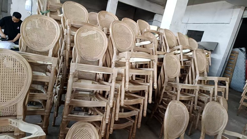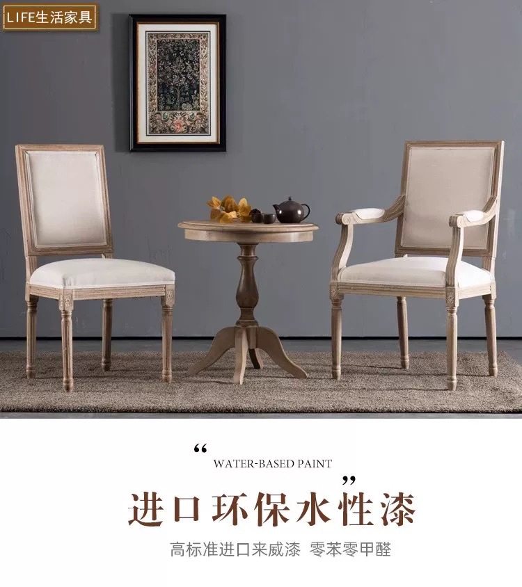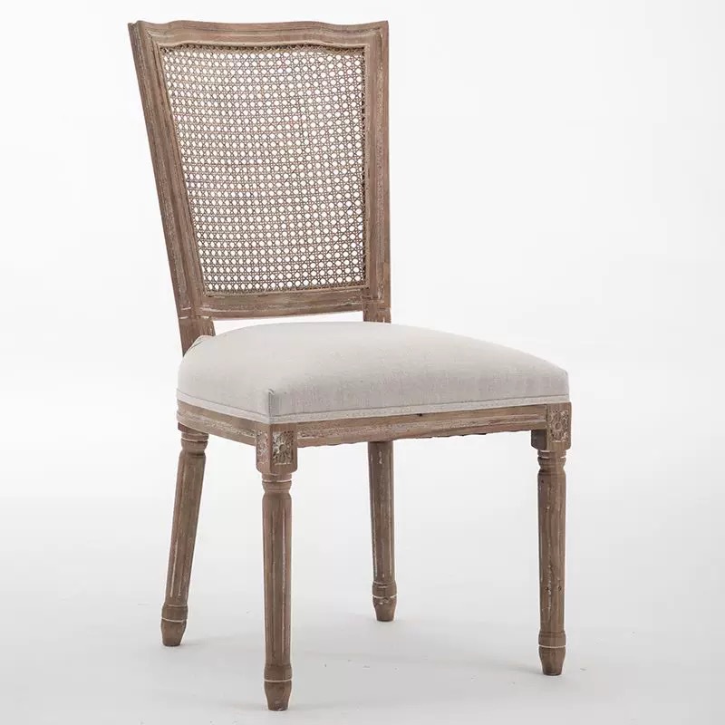 factory wholesale vintage distressed country style and simple american pure solid wood rattan backrest chair soft bag stackable round back chair 中文版