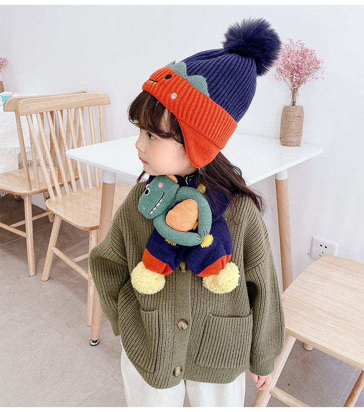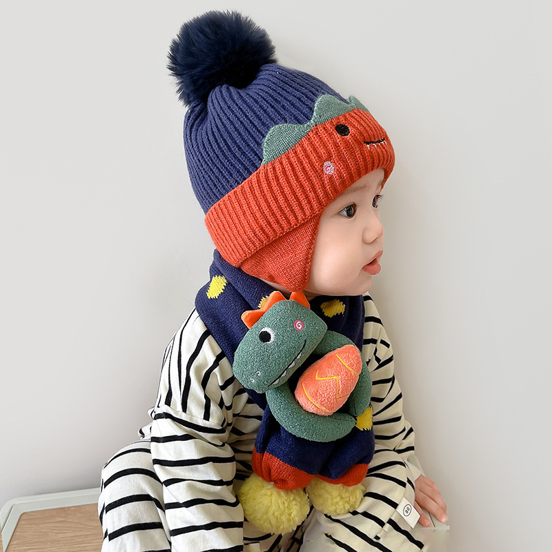 children's animal thin cap-navy blue [dinosaur]]