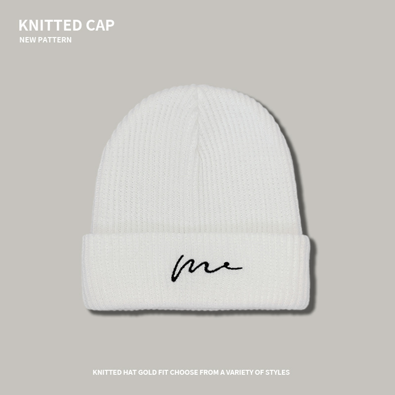 line knitted woolen cap-white