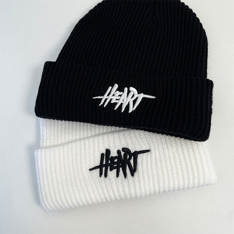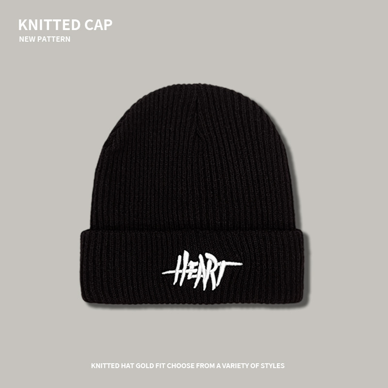 heart knitted woolen cap-black